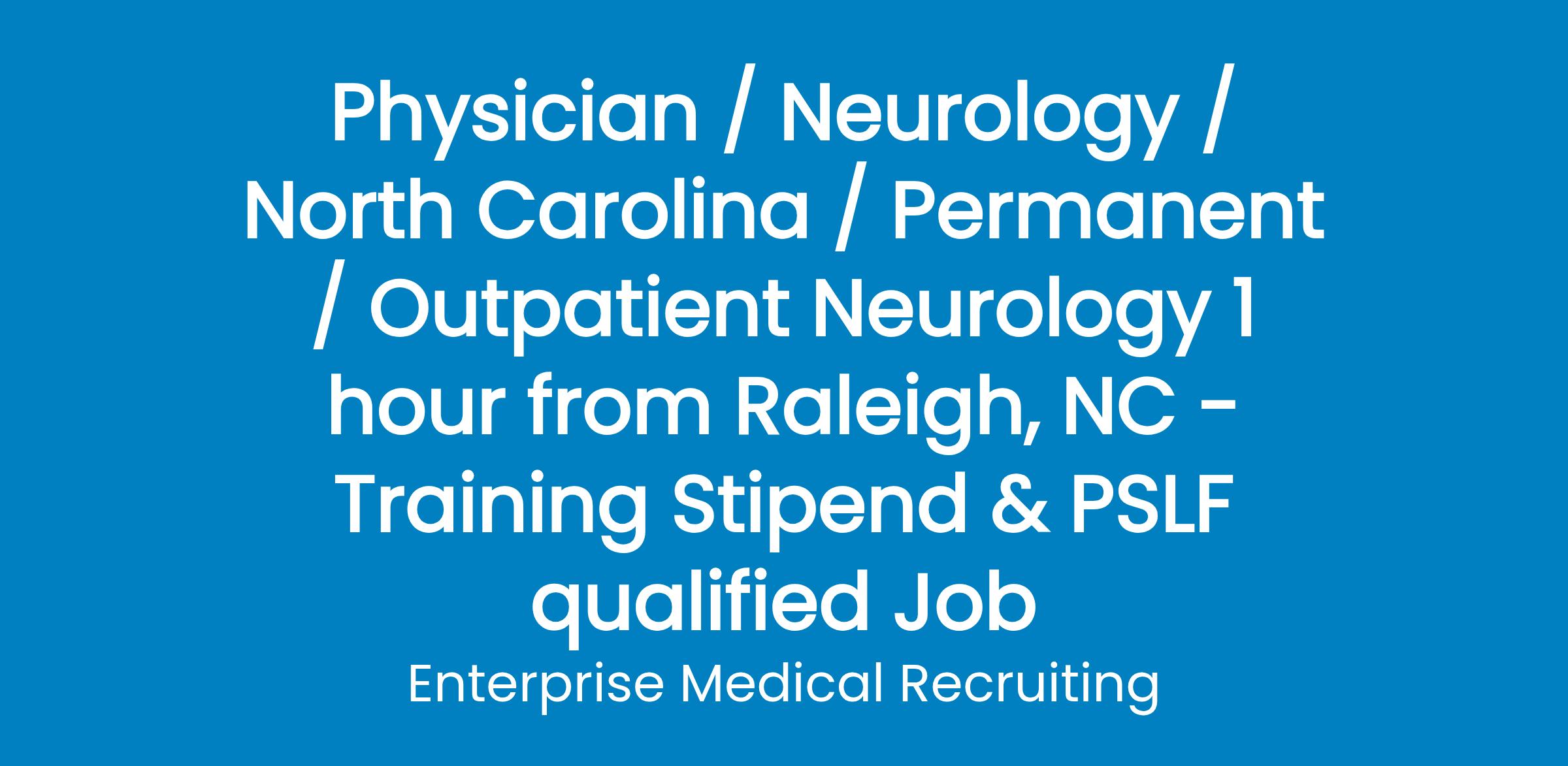 Enterprise Medical Recruiting is assisting a healthcare system in North Carolina to expand and add an additional Neurologist! This will be an outpatient-only position in Fayetteville, North Carolina. The practice has excellent hospital support for inpatient coverage.