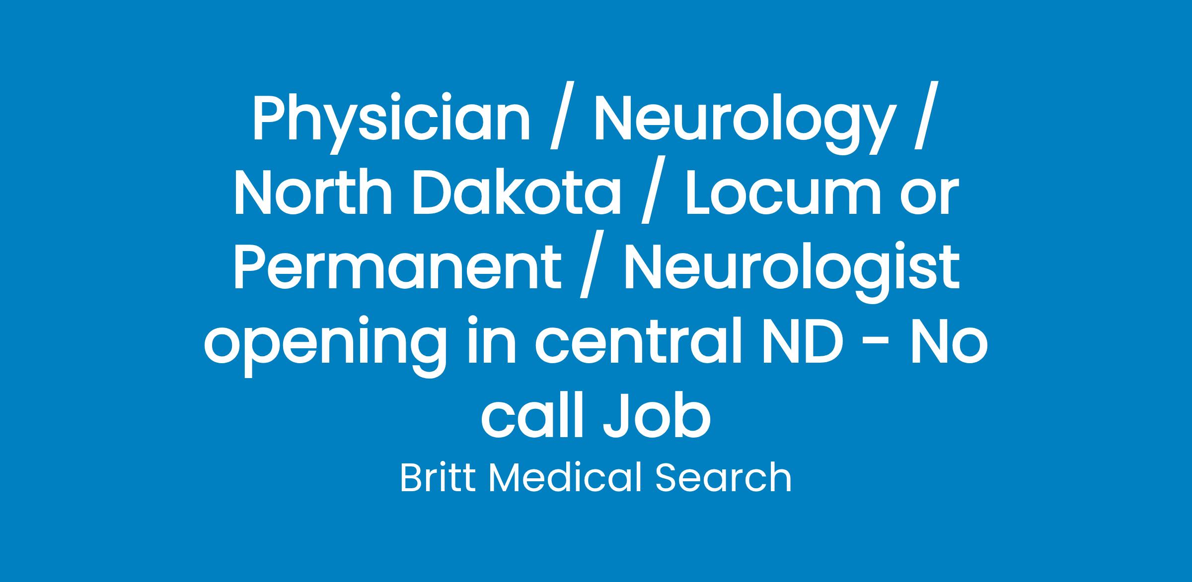 Seeking a BC/BE full-time Neurologist to join a large multispecialty group in central ND.