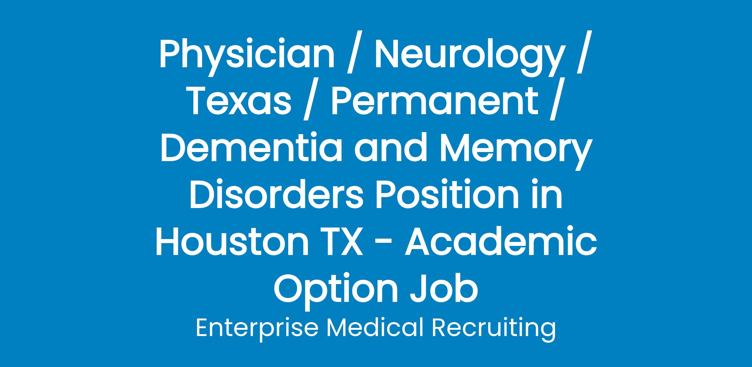 Enterprise Medical Recruiting is assisting a sizable academic system in Houston TX to recruit a new Neurologist specializing in Dementia and Memory Disorders. They are looking for someone to come in, at an assistant or associate professorship level.