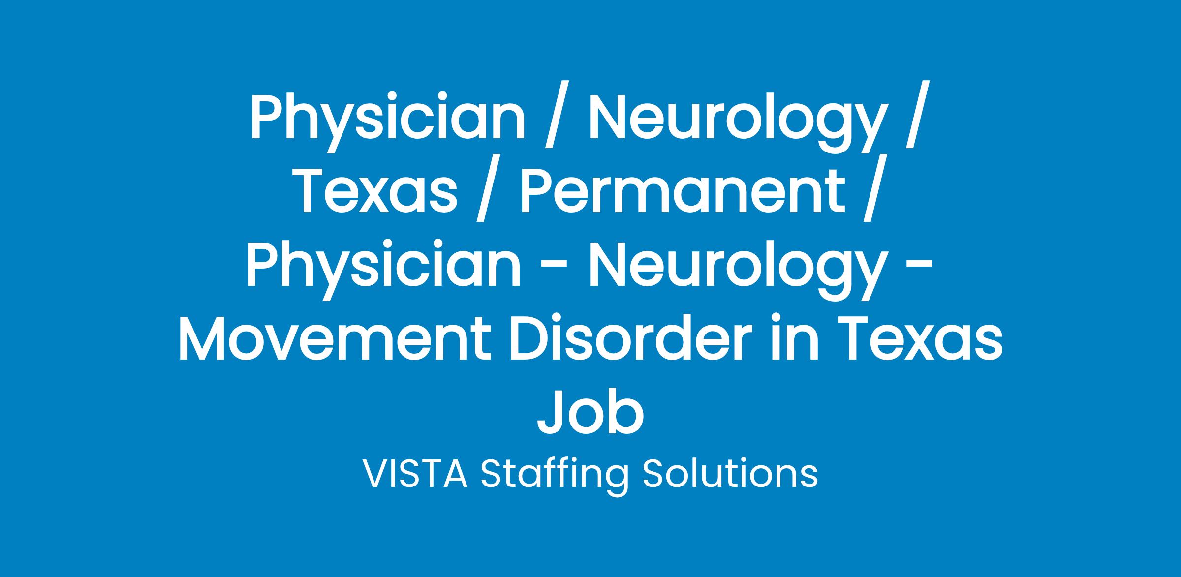 Are you a Neurologist searching for your next perm position? This position with one of VISTA s healthcare partners in Texas might just be the opportunity for you!