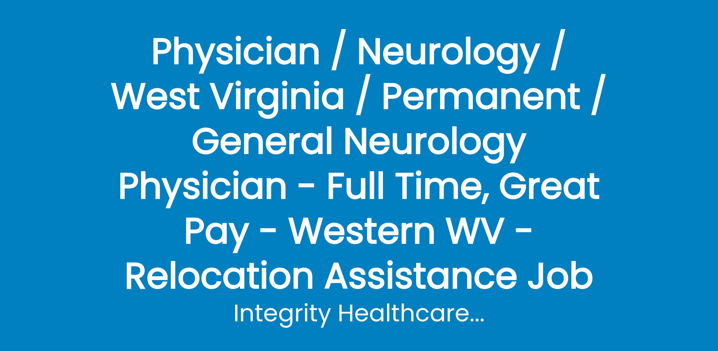 Physician / Neurology / West Virginia / Permanent / General Neurology Physician - Full Time, Great Pay - Western WV - Relocation Assistance Job