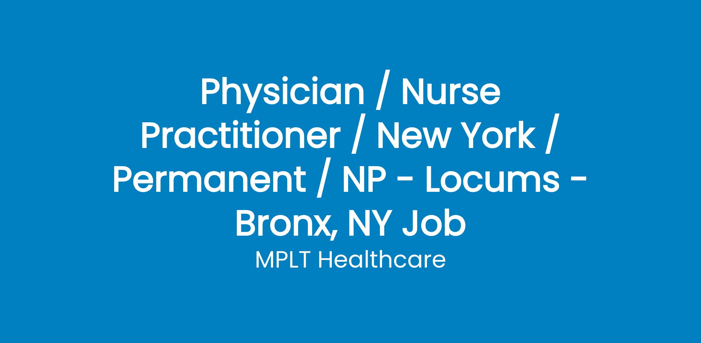 MPLT Healthcare is looking for practitioners who Understand the Urgency, Never Give Up, and Have the Courage to Excel in the forever changing medical industry! We have numerous opportunities for an experienced Nurse Practitioner with highly competitive pay rates in Bronx, NY.