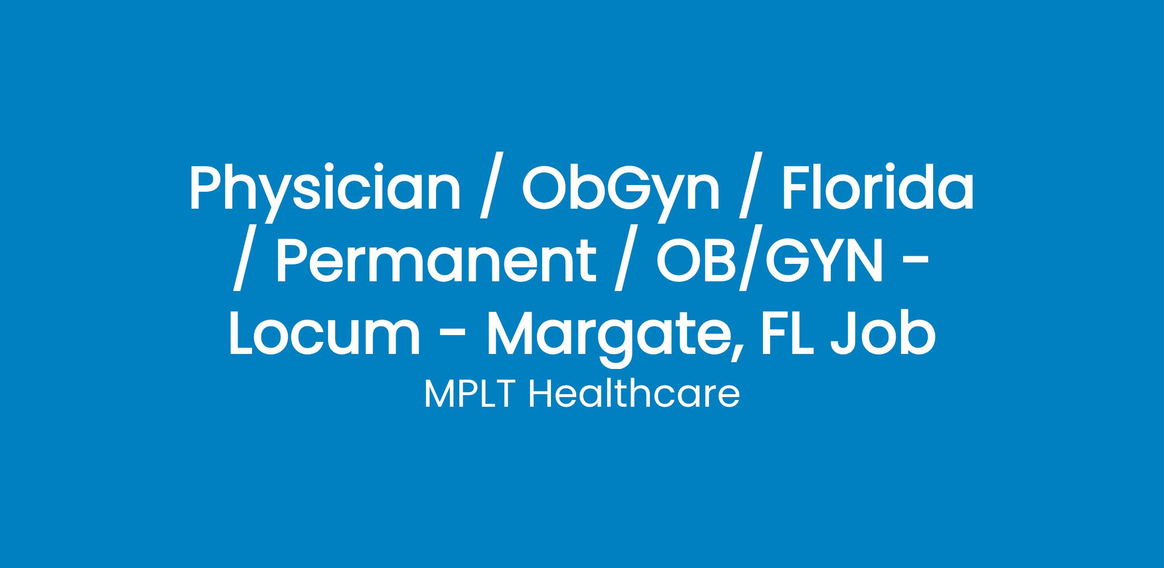 MPLT Healthcare is looking for physicians who Understand the Urgency, Never Give Up, and Have the Courage to Excel in the forever changing medical industry! We have numerous opportunities for an experienced OB/GYN with highly competitive pay rates in Margate, FL.
