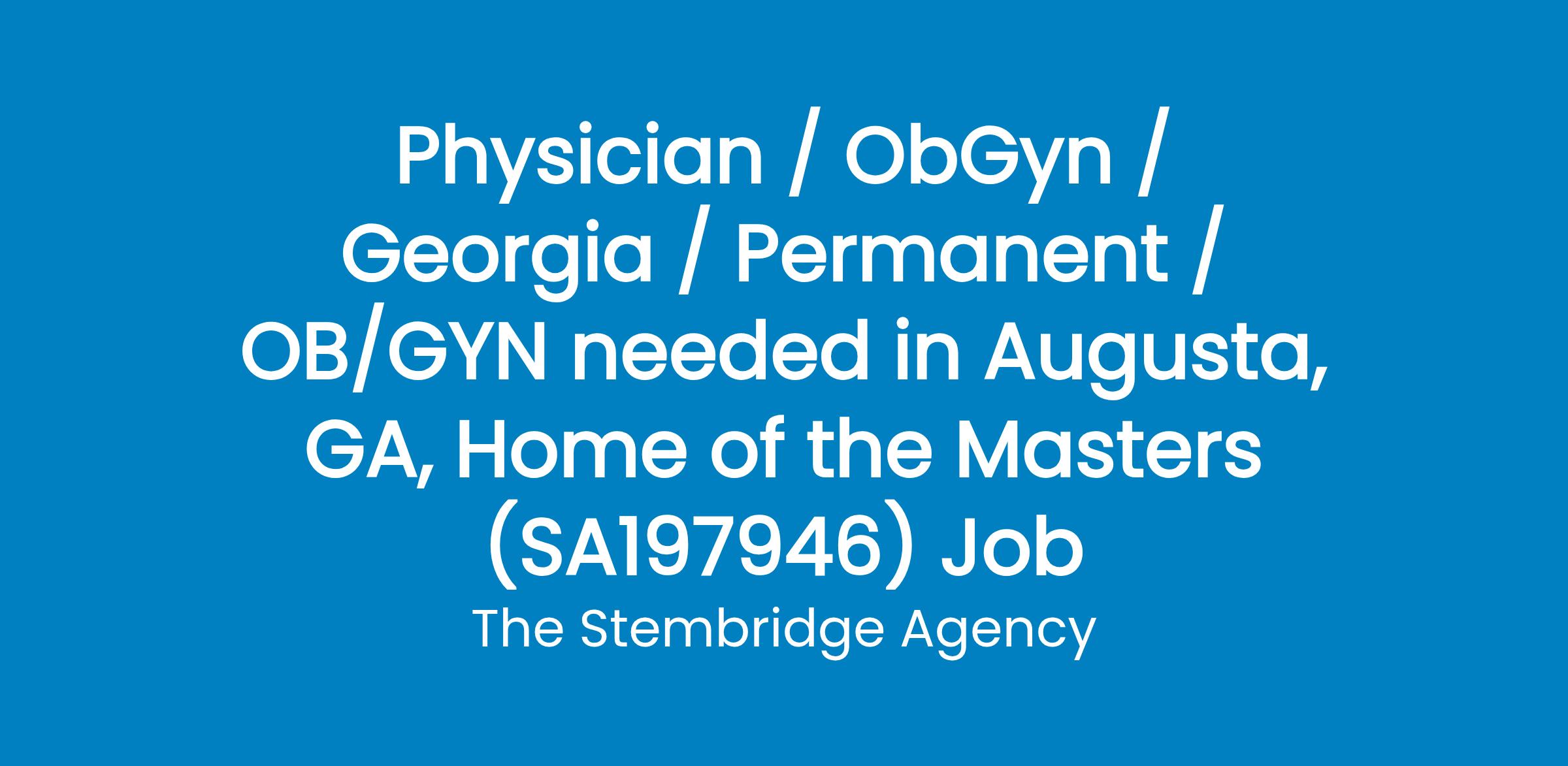 This east Georgia medical center is seeking a board certified/board eligible Obstetrics/Gynecology physician as it assists a well-established independent OBGYN private practice in the greater Augusta area with two General OBGYN physician opportunities. The practice, located in Augusta GA, has served the community since 1947. This practice is located within the east Georgia medical system, a top regionally ranked hospital, serving patients for over 200 years. This salaried physician will receive a competitive salary based on MGMA guidelines, full employee benefits (including profit sharing, relocation expenses and educational loan assistance), as well as, office setup and support from the administrative management team.Highlights include:Seeking candidates completing residency/fellowship or recent graduates looking for a partnership track.Role: General OBGYN Seeking two physicians. Board Eligible or Board Certified.Fellowship not required.Location: A private practice with two office locations. Primary office is located within the Health Care Systems main hospital one floor above Labor & Delivery. The satellite practice is located in a high population growth area in West Augusta.Program: General OBGYN Deliveries and surgical procedures including minimally invasive surgeries. Procedures Preferred (not necessarily required).Schedule: Autonomous schedule to include clinic, operating and procedures. Weekday OB call schedule is 1 in 10 days. Weekend call schedule is 5 weekends per year.Holiday call schedule 1 holiday per year. No ER call. Only provide coverage for the Main Hospital location. OBGYN hospitalist program is available. 20 to 30 patients per clinic day.Compensation: $220,000 annual salary and eligibility for productivity bonus after the completion of 2nd year of employment. Opportunity to pursue partnership track after completion of second year (requires no buy in).Benefit Package: Medical, dental, vision, life insurance and profit sharing. During each twelve (12) month period of employment, four (4) weeks (twenty working days) of paid time off in which the physician may use for vacation or continuing medical education. CME Allowance provided.Other details: Two DaVinci Xi Robots in the Hospitals Main Operating Area along with a Urogynecology equipped procedure suite located within the private practice. Level 3 NICU and both MFM and GYN Oncologist consults readily available.The Medical College of Georgia, which includes a pediatric surgery subspecialty, is located within two blocks from the Health Care Systems Main Hospital.AugustaRichmond County is a consolidated city-county municipality, located at the fall line of the Savannah River. According to 2012 US Census estimates, the Augusta-Richmond County population was 197,872. Augusta is the principal city of the Augusta-Richmond County Metropolitan Statistical Area, which as of 2012 had an estimated population of 580,270, making it the third-largest city and the second-largest metro area in the state after Atlanta. It is the 116th-largest city in the United States. Augusta, GA was named the Most Neighborly city in America by Southern Living Magazine. Columbia County is one of the fastest growing counties in the United States and Evans, GA was named Money Magazines Best Place to Live in America. Internationally, Augusta is best known for hosting The Masters golf tournament each spring.For more information, please contact
