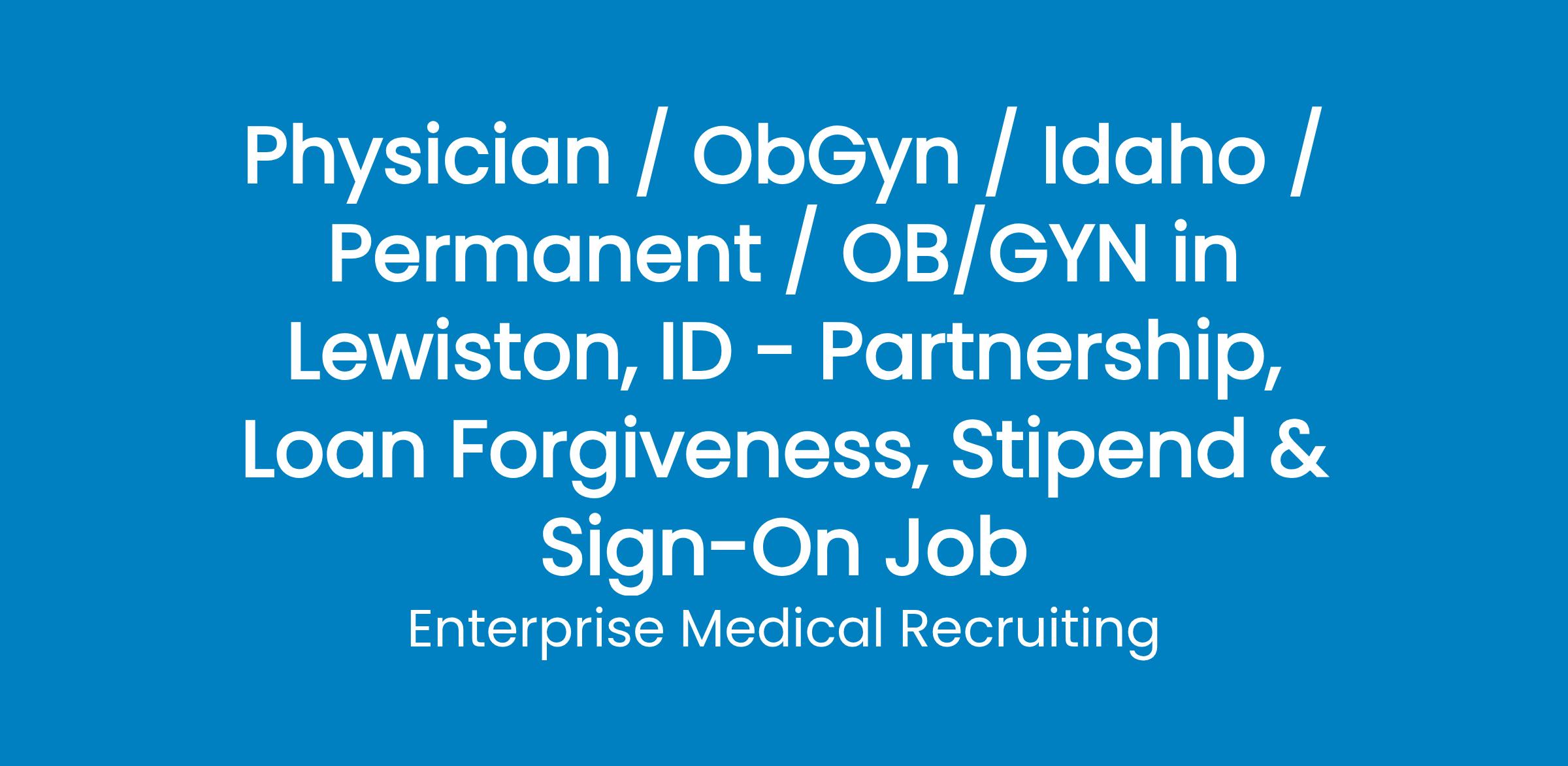 We are currently scheduling interviews with an established practice located in Northern Idaho seeking a full-time OB/GYN.