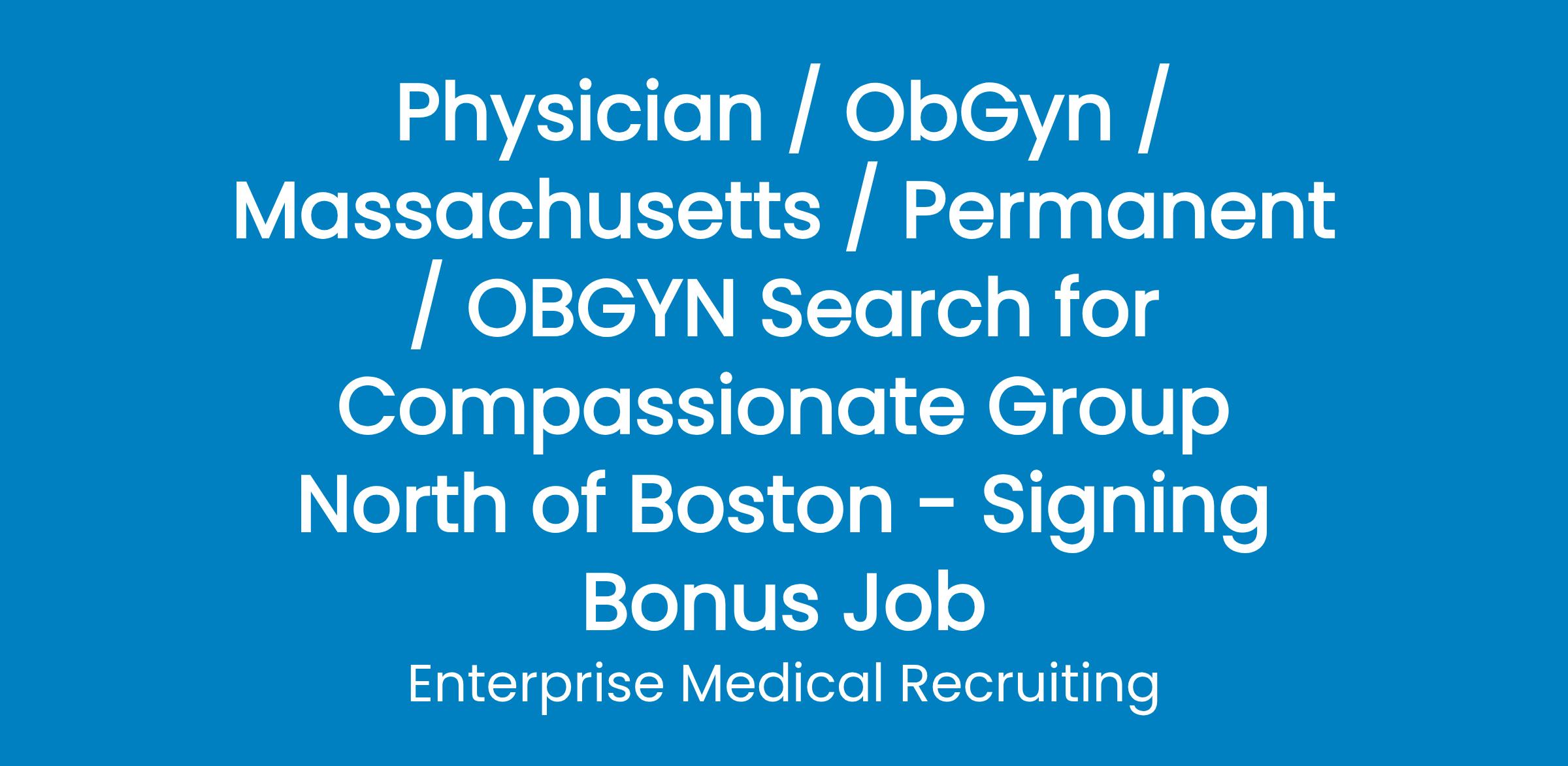 Searching for an OBGYN to join a well-established group north of Boston, Massachusetts that is known for its quality and commitment by the panel of patients they serve. Easy commute from Boston or the seacoast of New Hampshire.