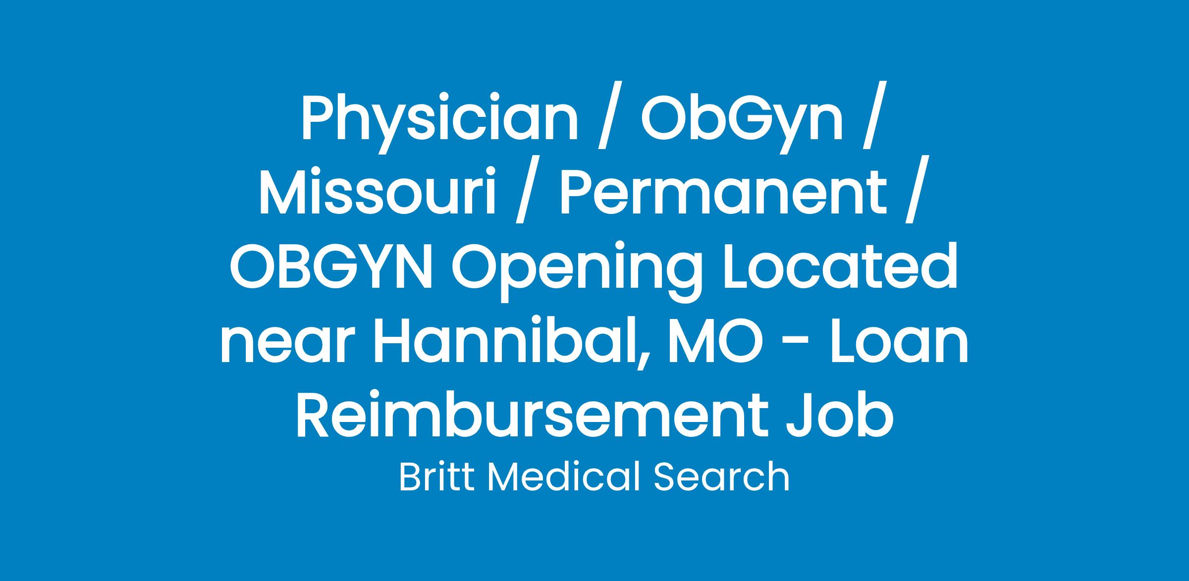 About the Area:Hannibal is a great Mississippi river town, 90 miles north northwest of St. Louis, Missouri, within 2 hours of Columbia, Missouri and Springfield, Illinois, and within 4 hours of Kansas City, Missouri and Chicago, Illinois. It has four seasons in a beautiful se tting. The arts community is active in this area. Hannibal is very family-oriented with top-rated public and parochial schools, a recently expanded YMCA and a progressive parks & recreation dept with Mark Twain Lake within 28 miles. It has an ever-expanding and diverse local economy that provides the clinic with a good payer mix and no HMO presence.