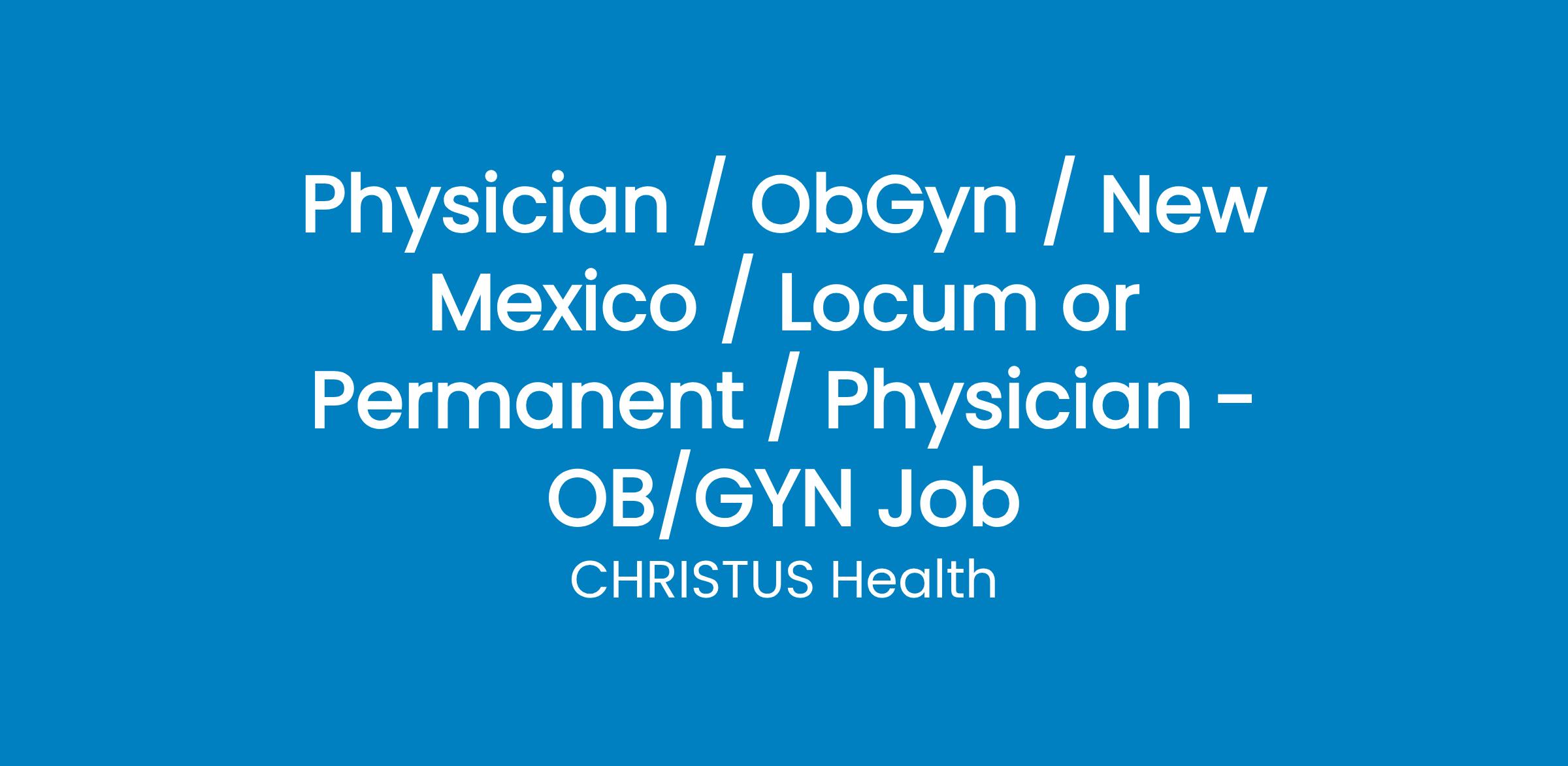 CHRISTUS Southern New Mexico in Alamogordo is seeking a board-certified or board-eligible OB/GYN to join our established practice, the regions only comprehensive womens health clinic. Our modern facility includes private exam rooms, procedure and ultrasound suites, an in-house lab, and full access to advanced equipment and hospital services, including labor and delivery rooms with epidural coverage provided by CRNAs. With a supportive clinical team, robust patient volumes, and CHRISTUSs reputation for excellence, this position offers the chance to make a meaningful impact on womens health in Southern New Mexico.