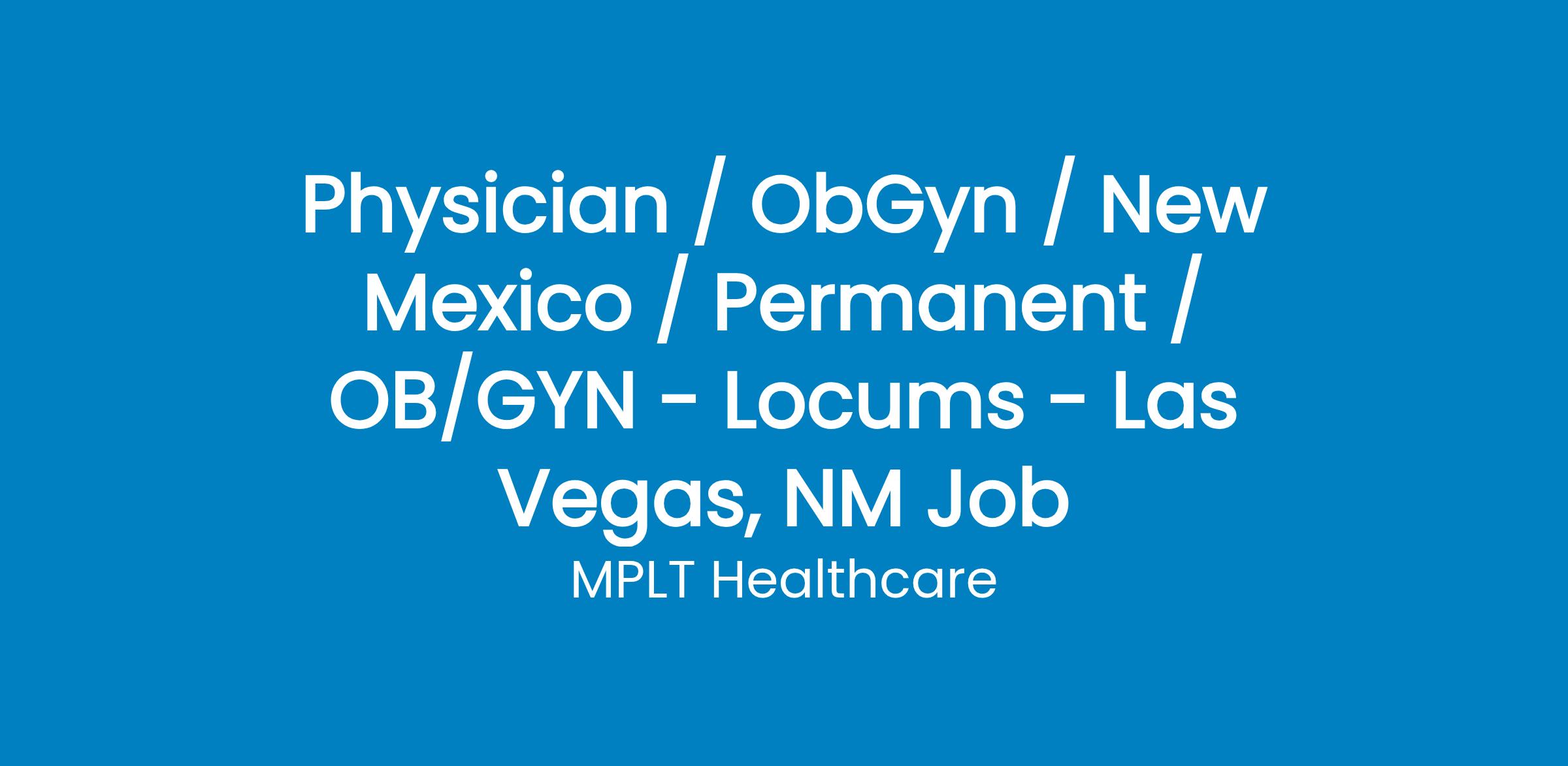 MPLT Healthcare is looking for physicians who Understand the Urgency, Never Give Up, and Have the Courage to Excel in the forever changing medical industry! We have numerous opportunities for an experienced OB/GYN with highly competitive pay rates in Las Vegas, NM .