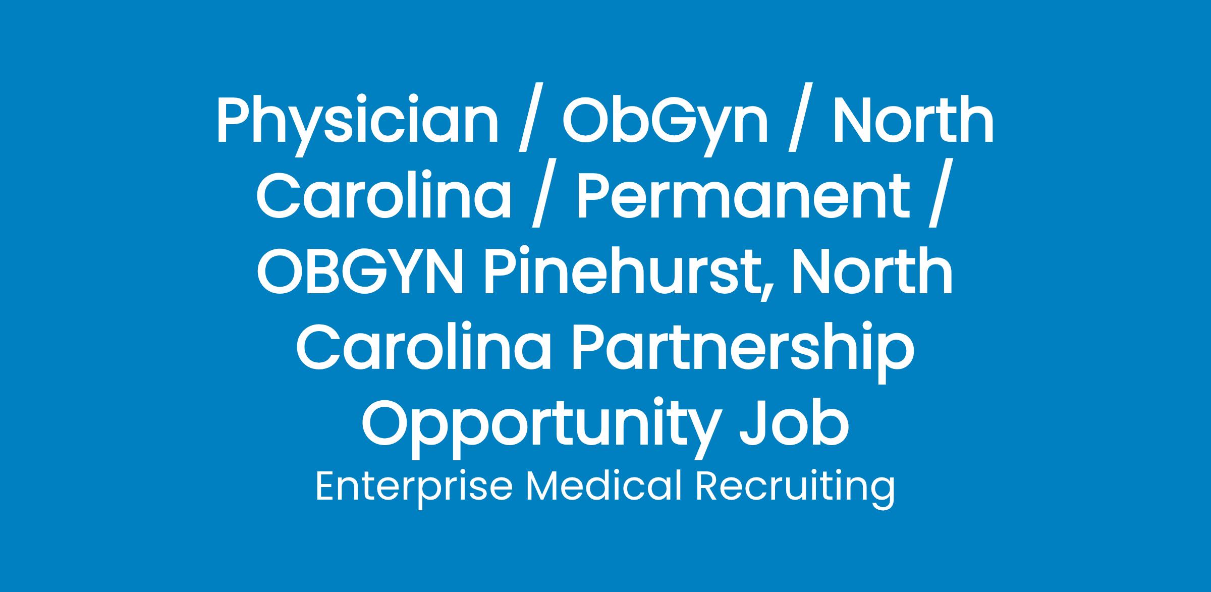 A private, physician-owned group in Pinehurst, North Carolina, seeks a BC/BE OB/GYN for a full-time and permanent position. Incoming OB/GYN will join a well-respected practice in a resort-style community. Enjoy working in a collegial group with an exceptionally high retention rate.