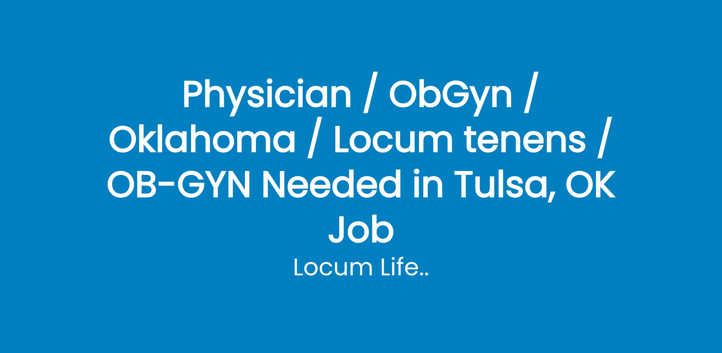 Physician / ObGyn / Oklahoma / Locum tenens / OB-GYN Needed in Tulsa, OK Job