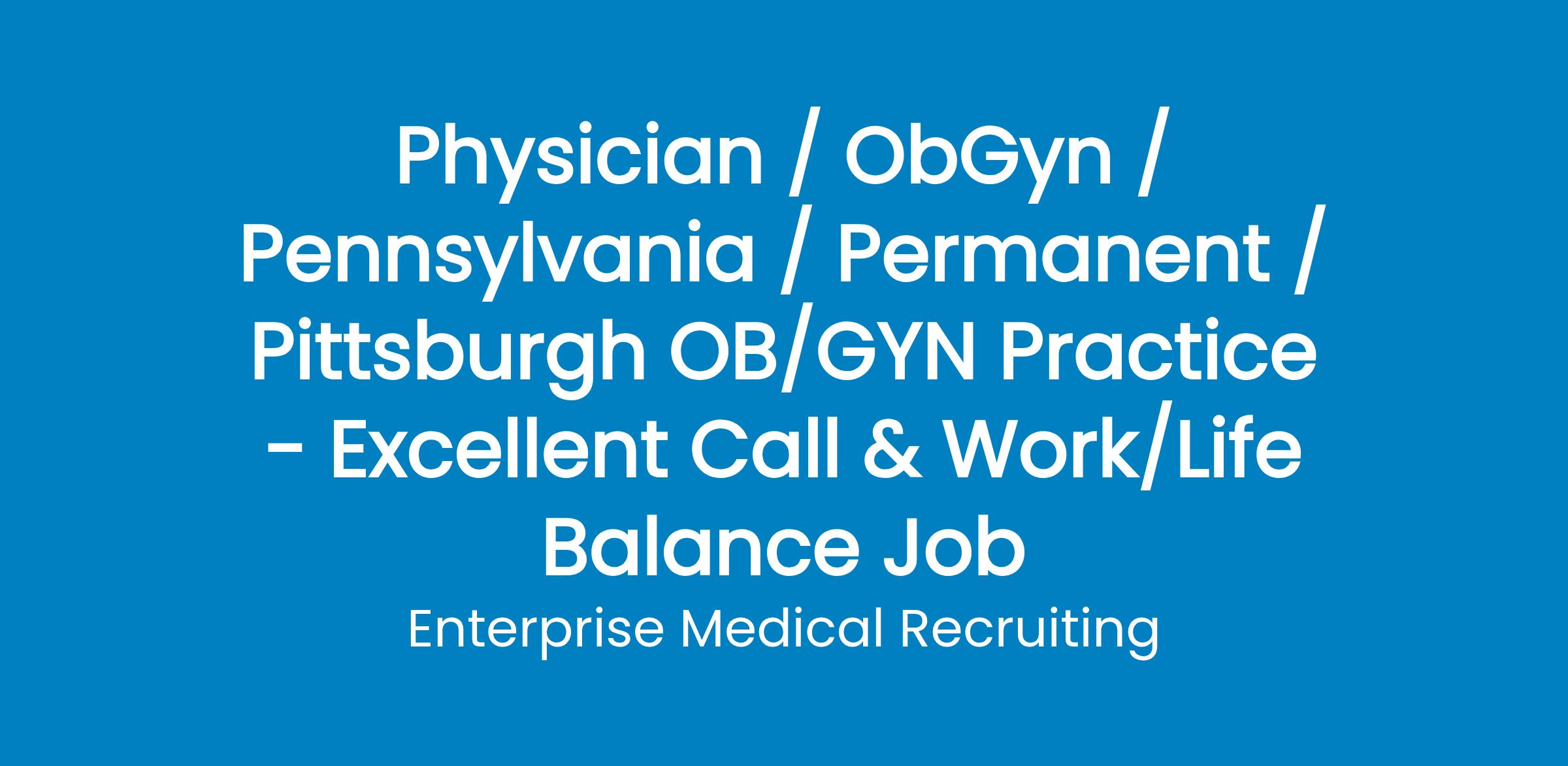 A premier OB/GYN practice in Pittsburgh, PA would like to add an OB/GYN to its team! The group is affiliated with a nationally recognized leader in women's health and a top, nationally ranked university hospital for gynecological care.