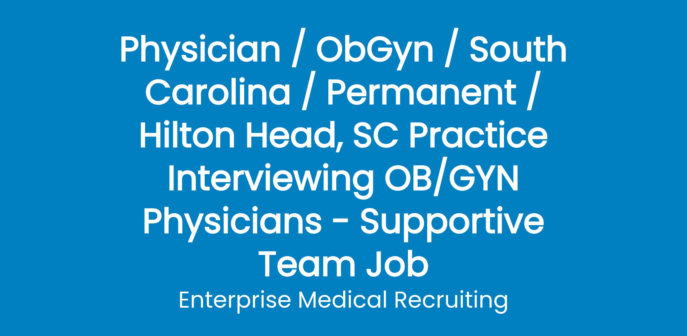 Excellent opportunity to join an established OB/GYN practice in the beautiful Hilton Head, SC area. This practice believes in making team decisions and providing a supportive environment for staff and patients.