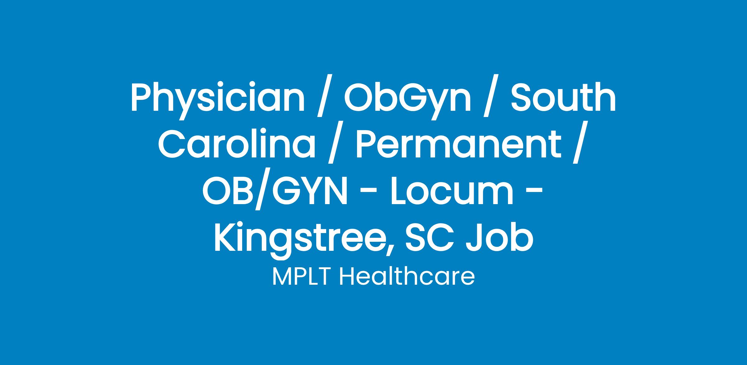 Have the Courage to Excel in the forever changing medical industry! We have numerous opportunities for an experienced OB/GYN with highly competitive pay rates near Kingstree, SC.