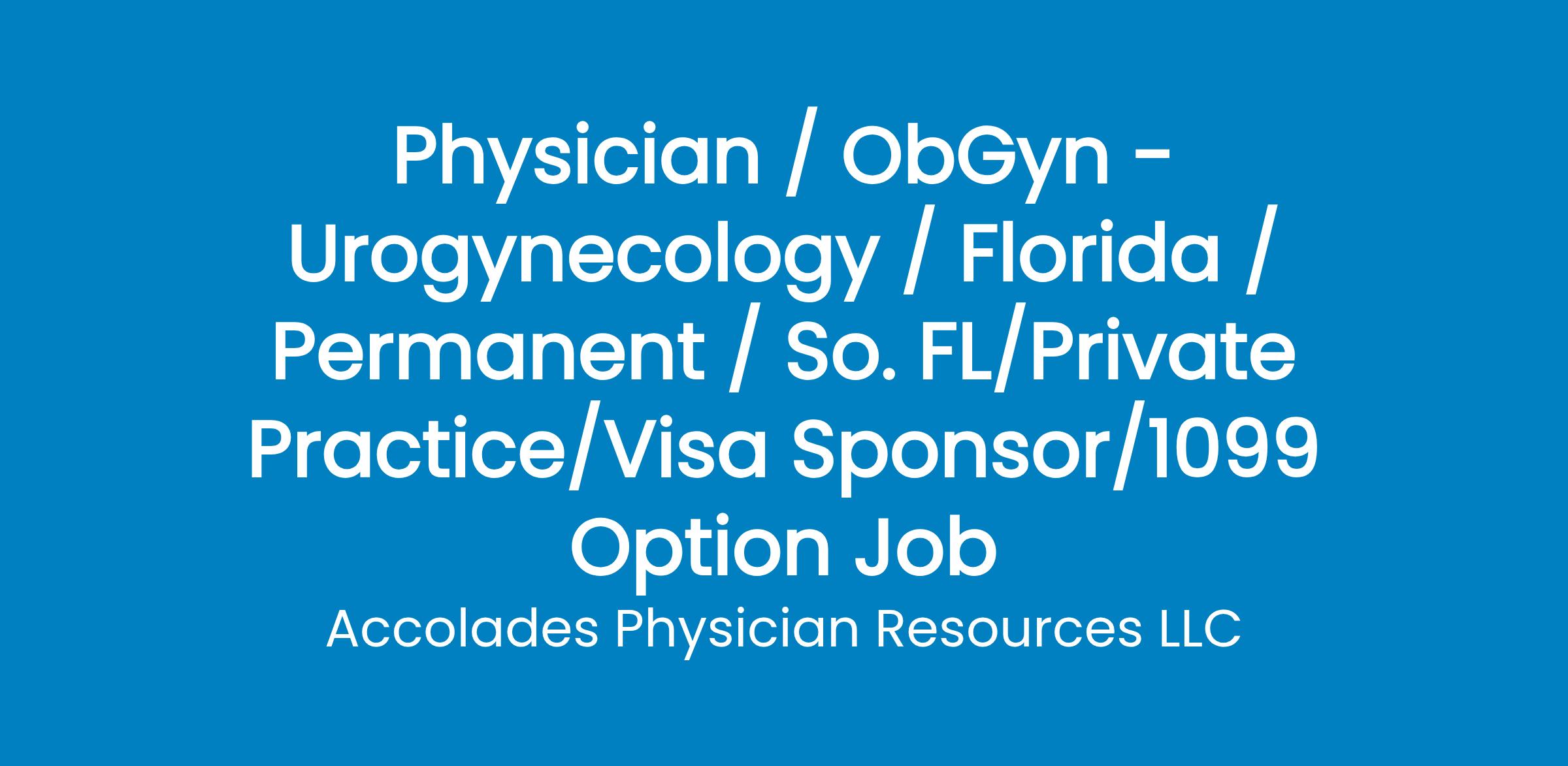 SOUTH FLORIDA UROGYNECOLOGIST OPPORTUNITYCOMMUNITYLive and work in Fort Lauderdale /South Florida. Easy access to popular beaches, metro amenities & fine dining. Fun for entire family, NCAA & Professional sports & much more. All with no state income tax.OVERVIEWDue to expansion, private OBGYN group is adding a Urogynecologist specialist to medical staff. Will have a brand new clinic in Fort Lauderdale area in early 2026.ROLE Join existing single specialty practice of 5 physicians Monday thru Friday schedule /flexible Support by RN, MA + Midwives & Nurse Practitioners Admit to one hospitalOpportunity for clinical trials & protected administrative timeBe busy immediatelyEMR AthenaWill sponsor H1B visa or J1 waiverPACKAGESalary range $300-$400k$10 relocation/sign on bonusMalpractice paidCME & more