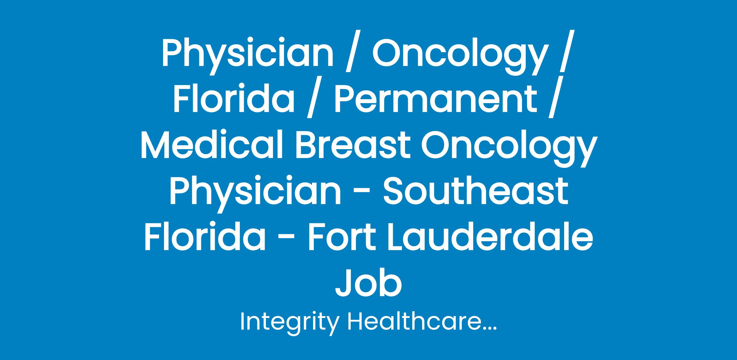 DedicatedBreast Medical Oncologistopportunity (BE/BC) focused 100% on breast cancer care