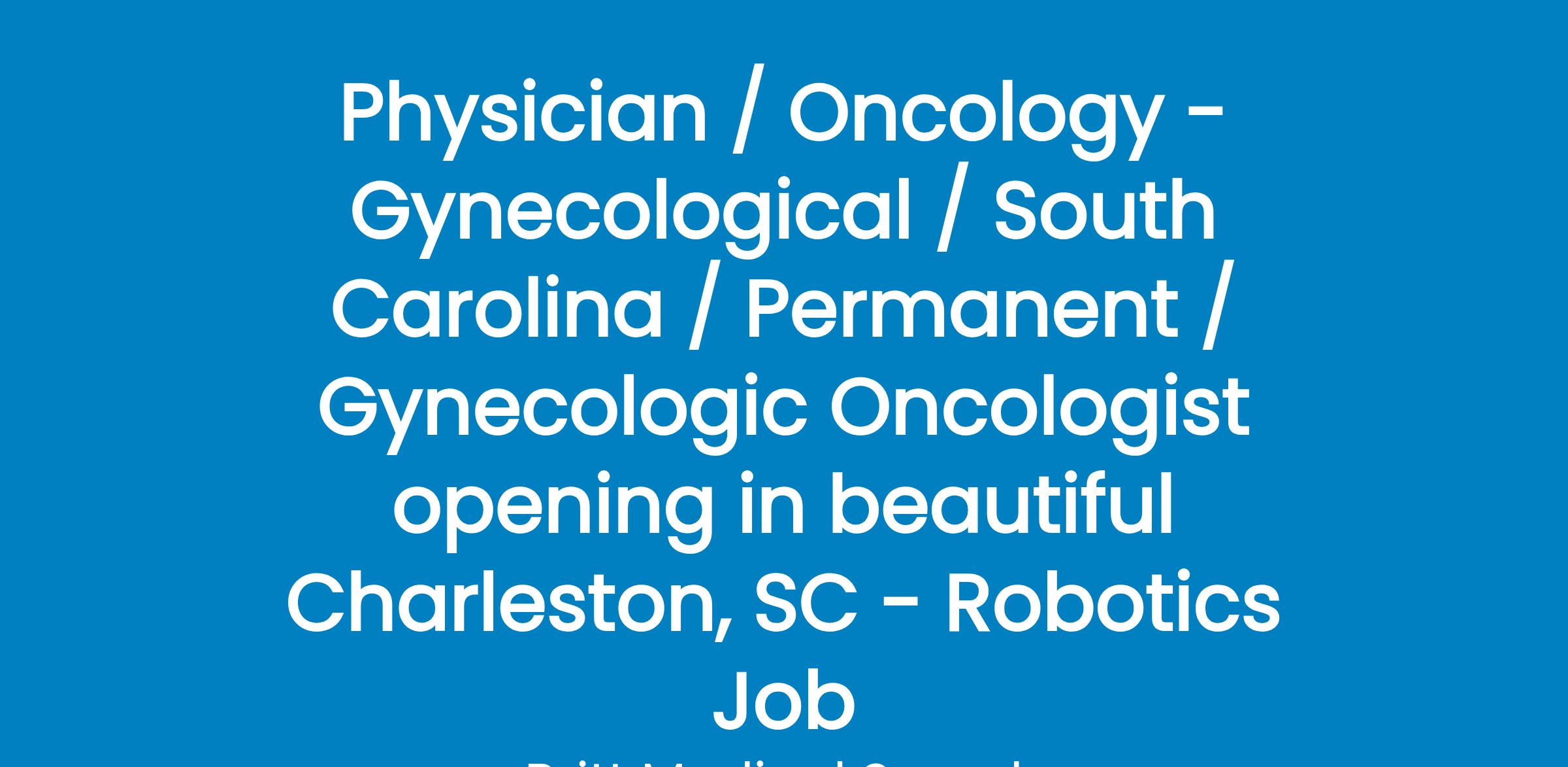 Hospital is seeking a BE/BC Gynecologic Oncologist to join their established team in beautiful Charleston, South Carolina!