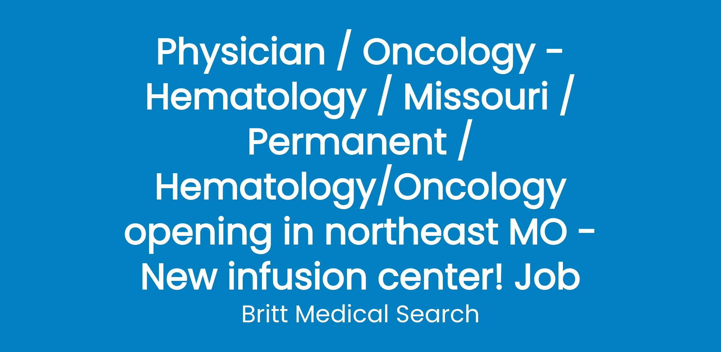 Seeking a BE/BC Hematology/Oncology Physician with strong clinical and interpersonal skills to join our expanding multi-specialty practice.