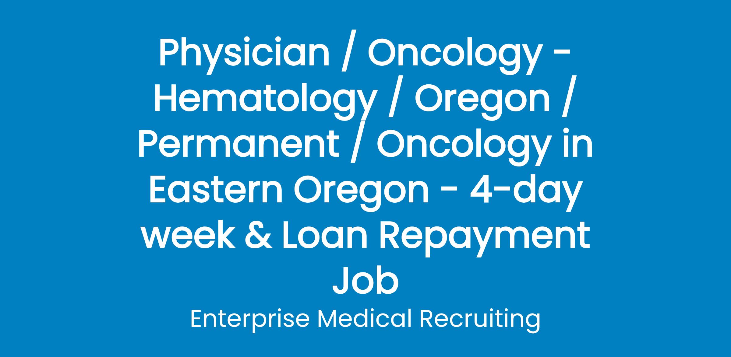A critical access hospital with 80 employed physicians and 700 employees in eastern Oregon is seeking a Medical Oncologist to add to their team.