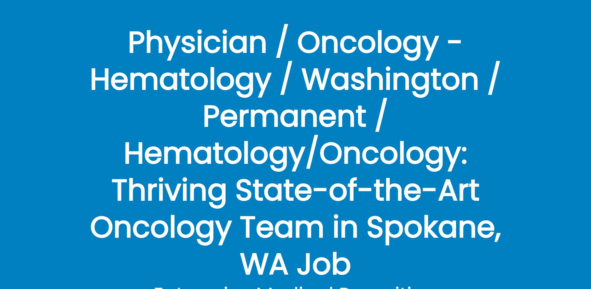 A long-standing Cancer Center in Spokane, WA is seeking a Medical Oncologist/Hematologist to join their team. The successful candidate will join a robust practice that includes Medical Oncology, Surgical Oncology, and Radiation Oncology.