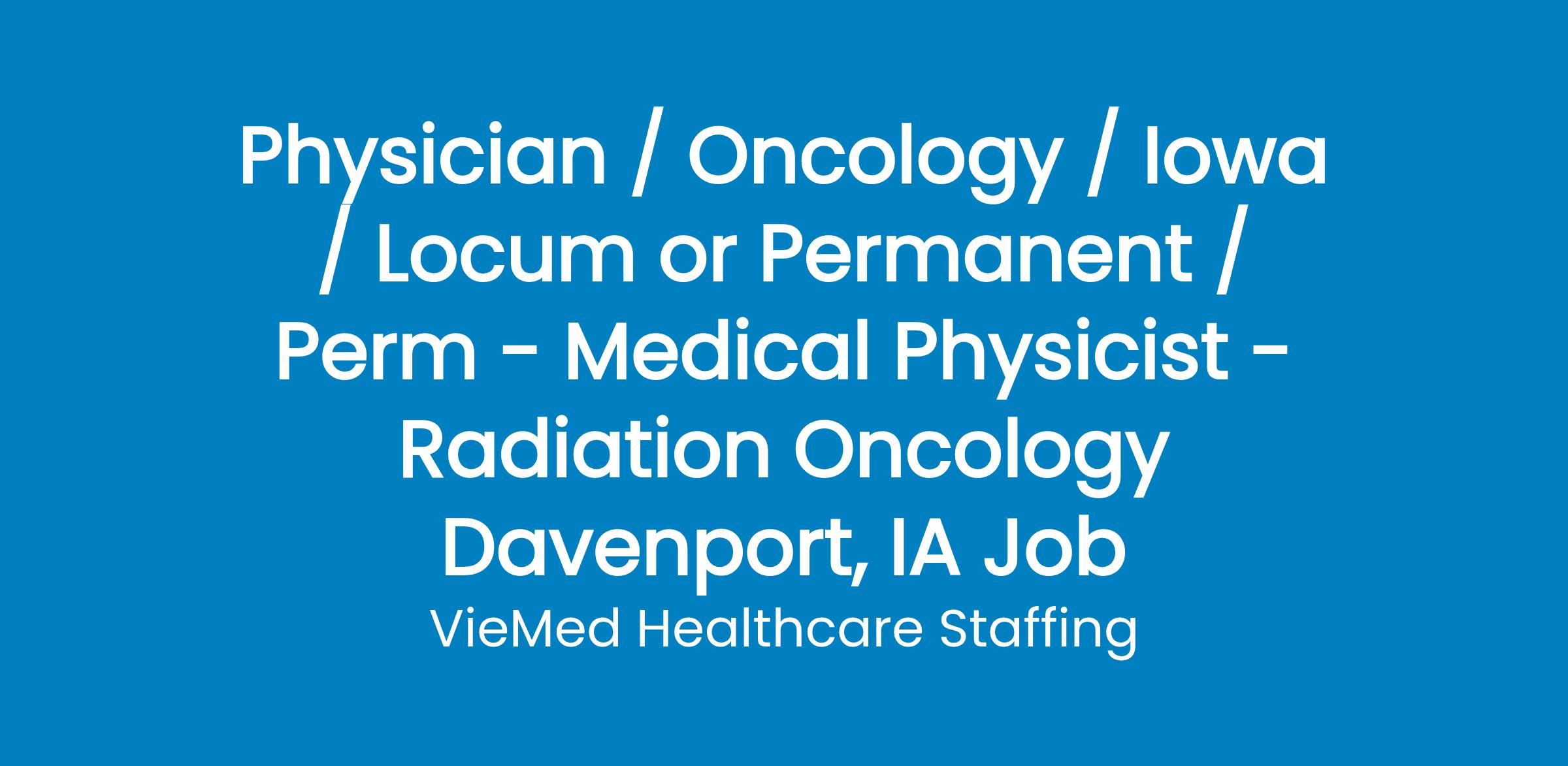 VHS is looking for a qualified Physicist - Radiation Oncology.