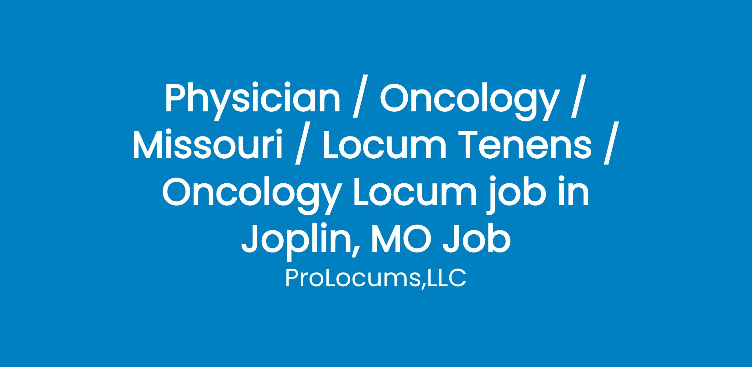 Specialty: OncologyStart date: ASAPEnd date: OngoingCoverage type:Scheduled Clinic Hours + CallSchedule: Full-time provider needed. Call coverage rotation can be scheduled pending the submission of multiple providers.Clinic: Monday to Friday 8A - 5PCall: 24 hr on-call coverage weekendsDates needing covered:Aug 1-5Aug 29-Sept 3Sept 6-9Sept 12-16Oct 3-7Oct 10-14Nov 21-23 Thanksgiving WeekDuties: Primarily Hematology patientsProcedures: Consults, follow-ups - possible bone marrowCall Type: beeper with some consultation.Call Back: 1 - 4 consults per weekendAdmissions: patients admitted to hospitalist service Site Location: Mercy Joplin Cancer Center Hospital and/ Clinic: Clinic (Hospital on-call weekend only)Mercy Cancer Center - Joplin is home to the latest in cancer technology and treatments, including daVinci robotic assisted surgery, Elekta Versa HD, the most advanced linear accelerator in the region offering IMRT stereotactic radiation treatment and 3D radiotherapy, PET/CT scans, prostate cancer treatment with SpaceOAR Hydrogel and the regions only automated breast ultrasound (ABUS).Patients per shift: 15-18
