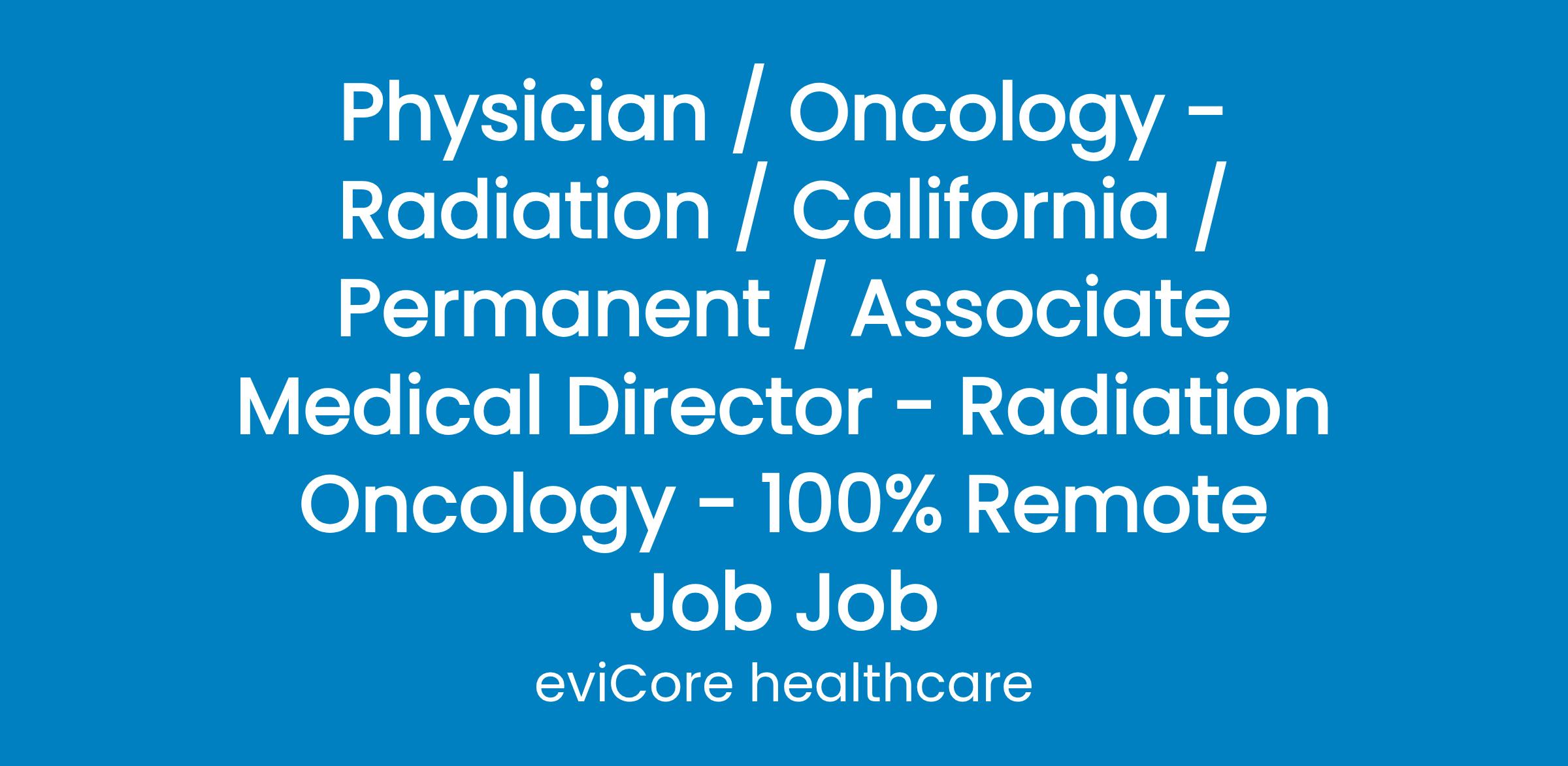 Physician / Oncology - Radiation / California / Permanent / Associate Medical Director - Radiation Oncology - 100% Remote Job Job