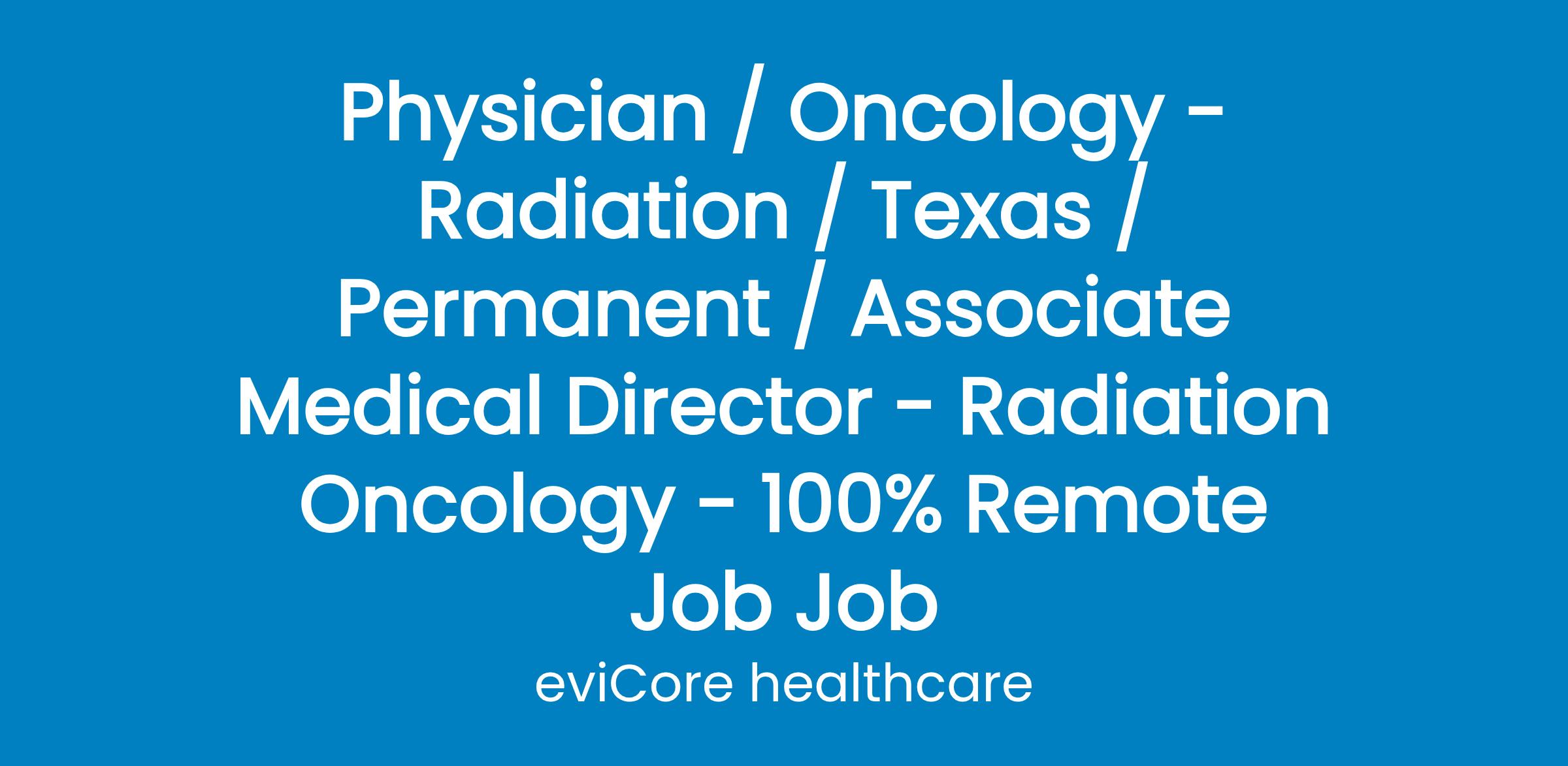 Physician / Oncology - Radiation / Texas / Permanent / Associate Medical Director - Radiation Oncology - 100% Remote Job Job