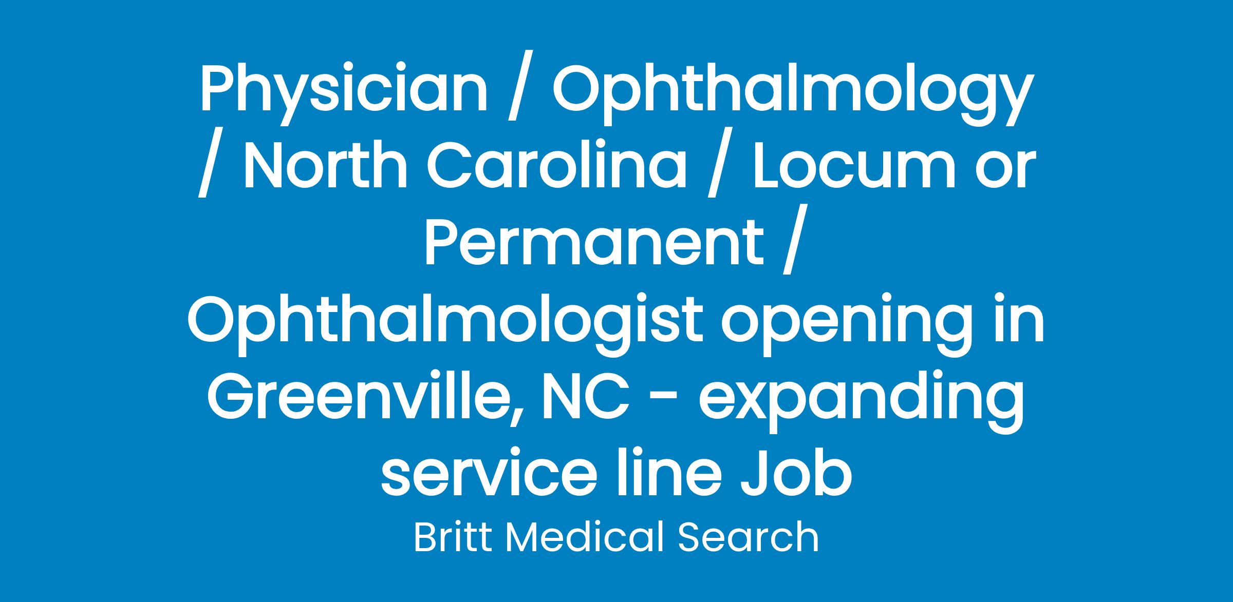 Medical Group is seeking board eligible or board certified ophthalmologist. The successful candidate will have responsibility for covering ophthalmology consultations at Medical Center as well as provide elective ophthalmology services to our community Medical Center is eastern North Carolina s only level 1 trauma center and the tertiary destination center for specialty surgical care and services.