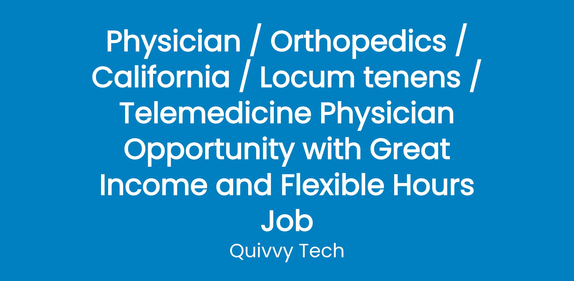Physician / Orthopedics / California / Locum tenens / Telemedicine Physician Opportunity with Great Income and Flexible Hours Job