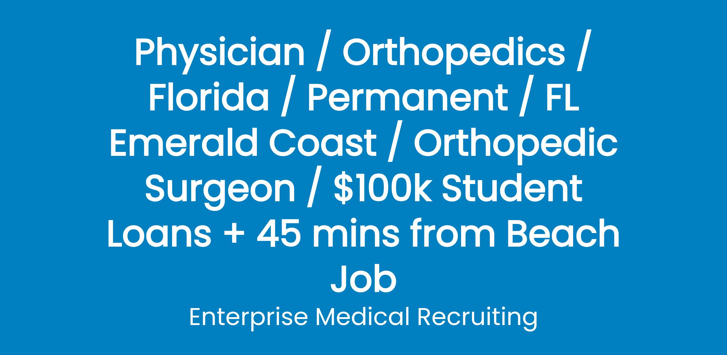 A medical center inOkaloosa County, Florida, is adding a full-time BC/BE Orthopedic Surgeon to their hospital-employed clinic!