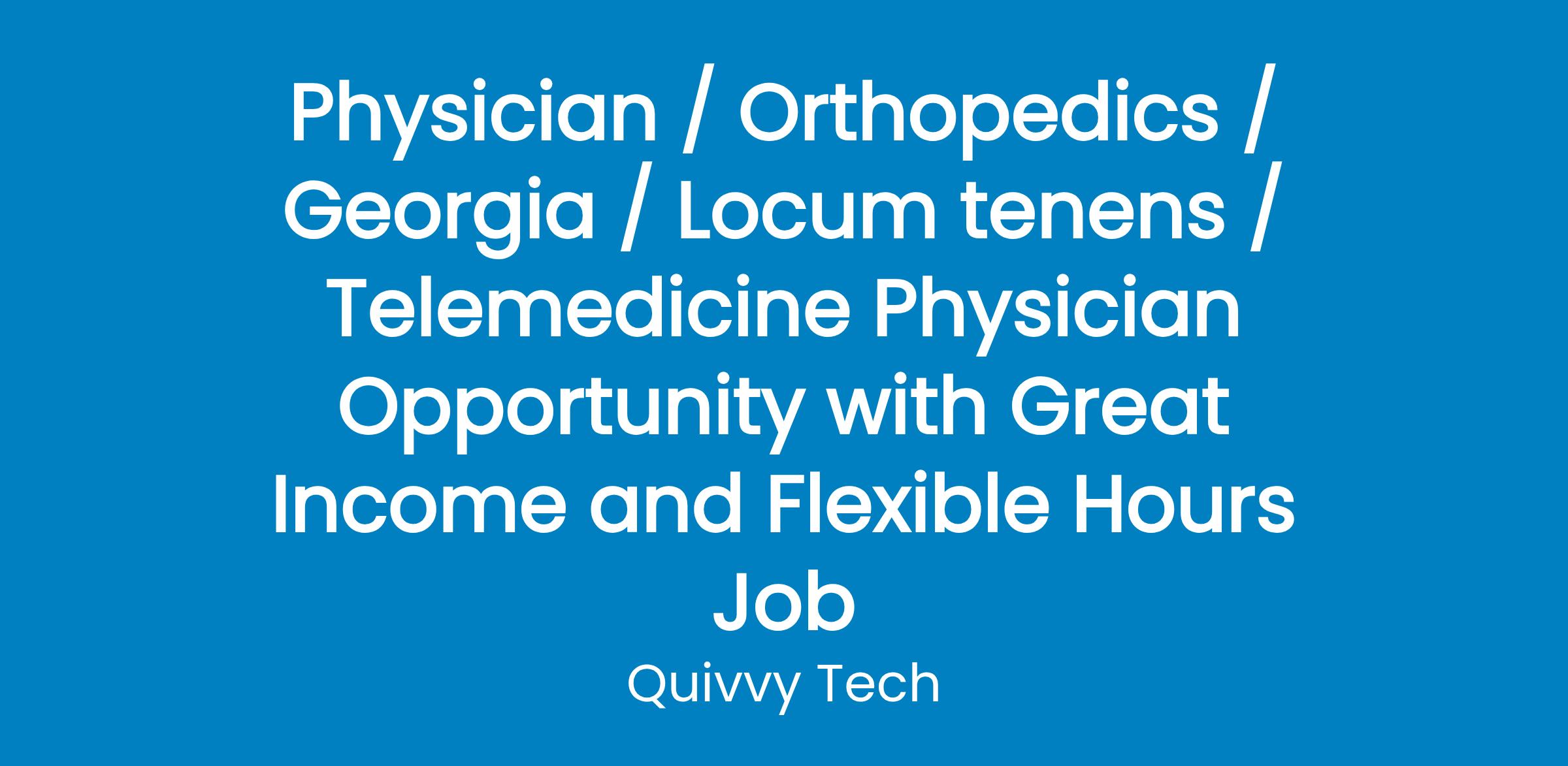 Physician / Orthopedics / Georgia / Locum tenens / Telemedicine Physician Opportunity with Great Income and Flexible Hours Job