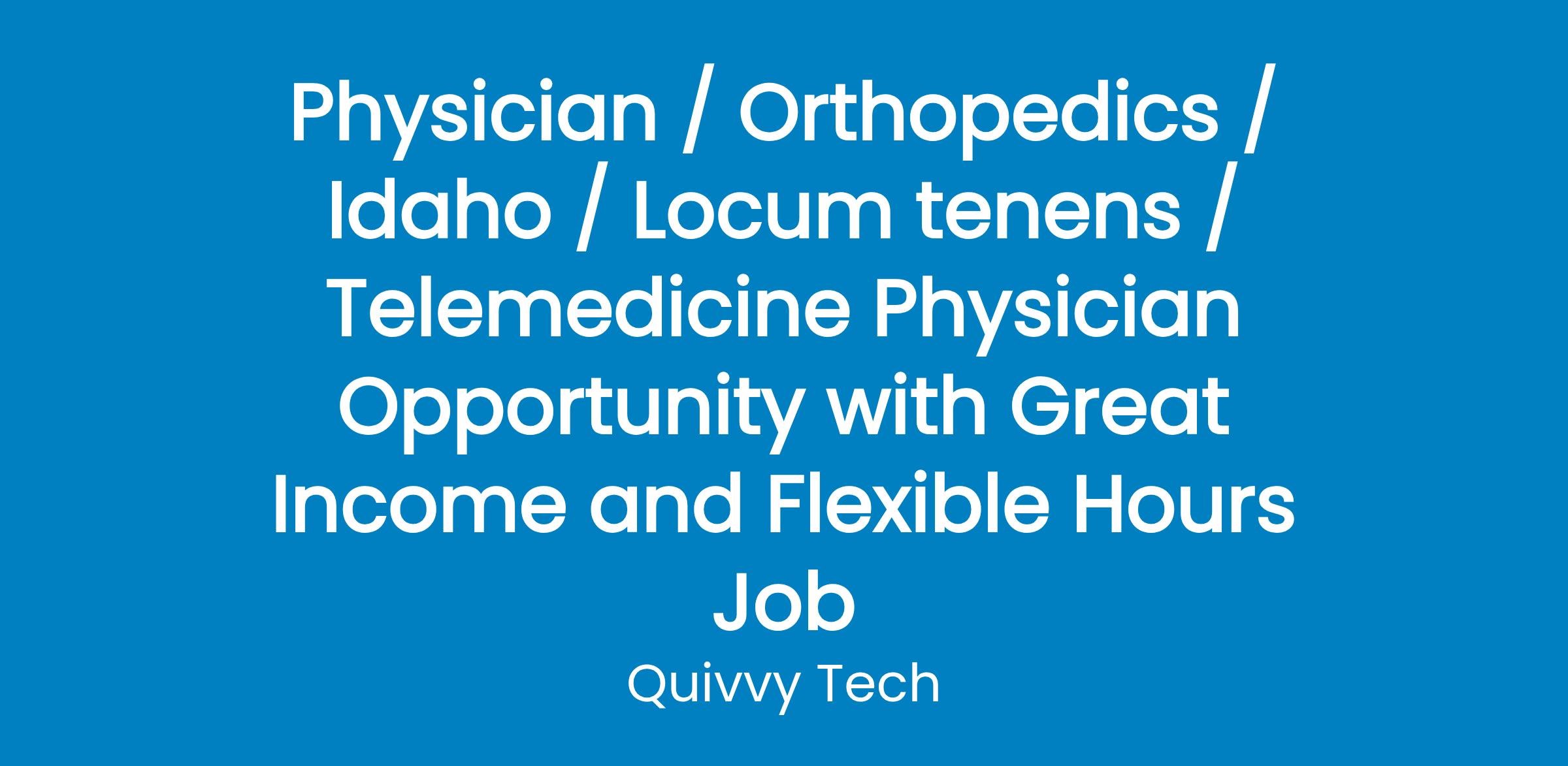 Physician / Orthopedics / Idaho / Locum tenens / Telemedicine Physician Opportunity with Great Income and Flexible Hours Job