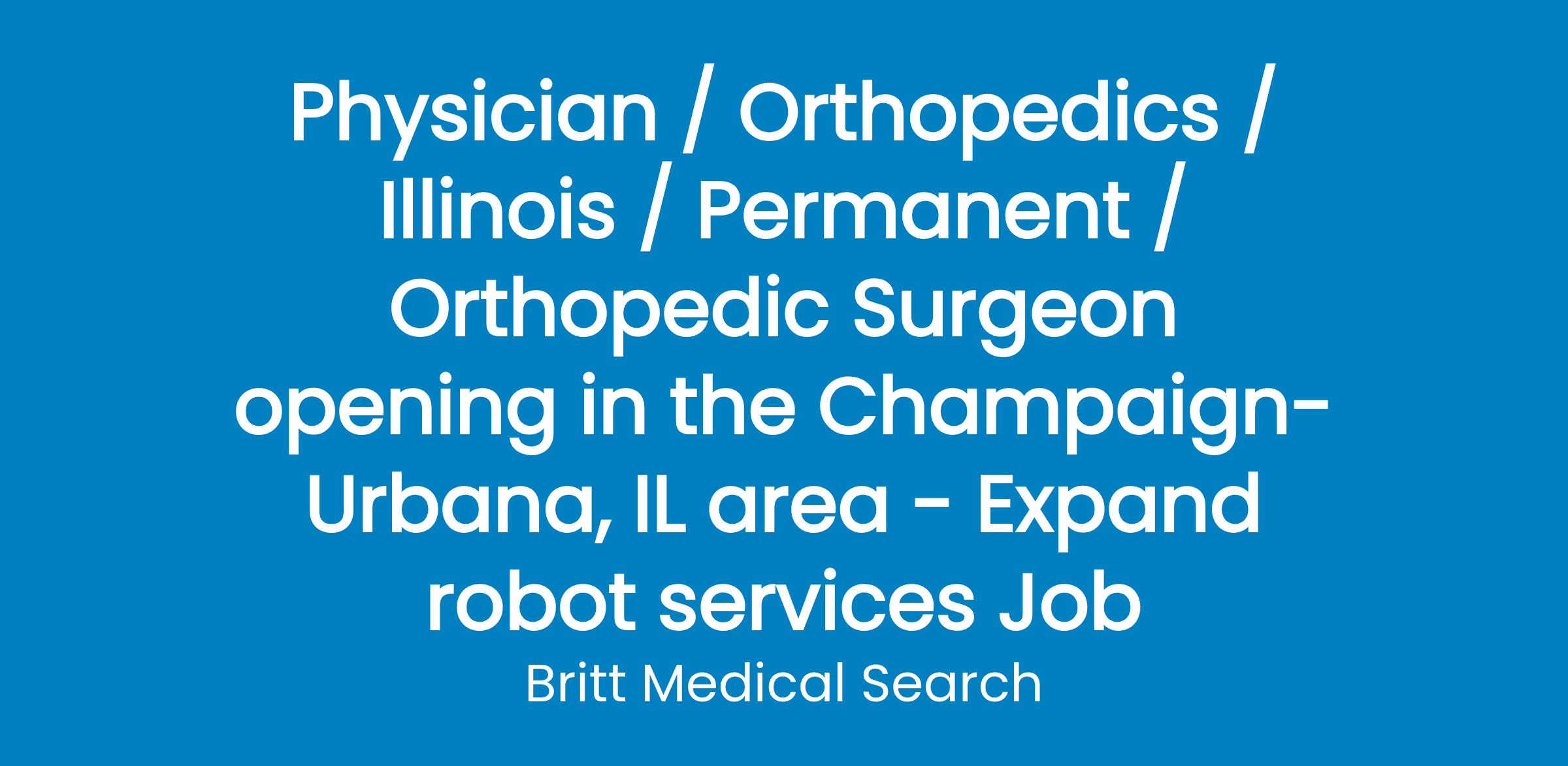 Seeking a BE/BC Orthopedic Surgeon with fellowship training in Adult Reconstruction to join our Division of Orthopaedics and Sports Medicine in the Champaign-Urbana, Illinois area.