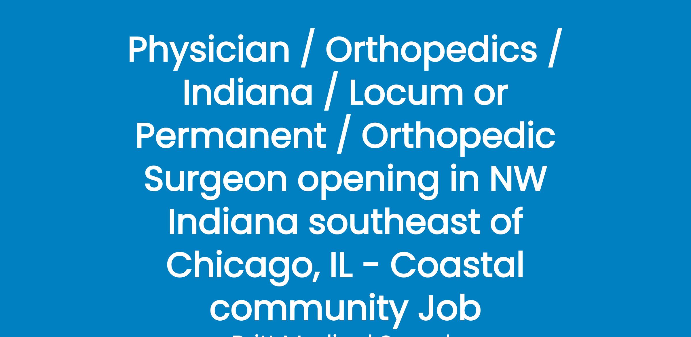 Seeking a BE/BC General Orthopedic Surgeon to join our well-established practice in northern Indiana, southeast of Chicago, IL.Details: - Ideal candidate will have a strong focus on clinical excellence and patient satisfaction