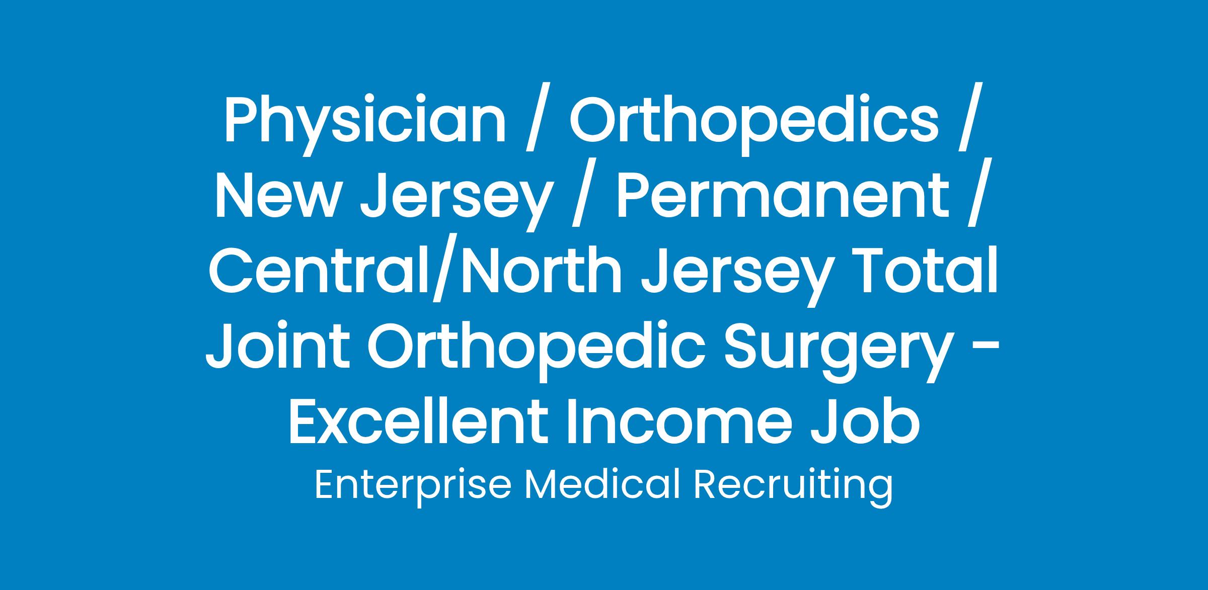 Enterprise Medical Recruiting is assisting a private practice in North/Central New Jersey to recruit a new Total Joint Orthopedic Surgeon to join their team.