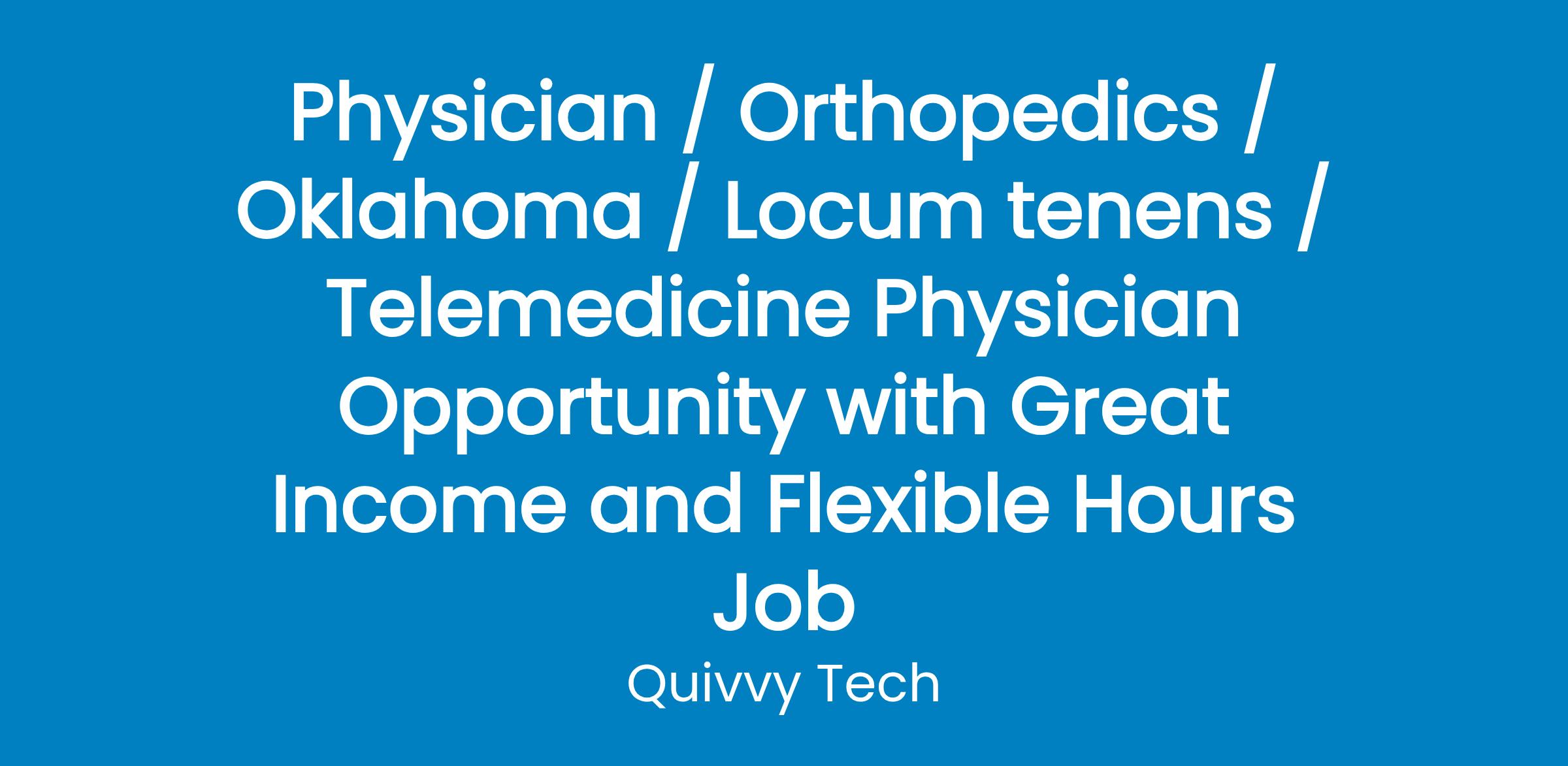 Physician / Orthopedics / Oklahoma / Locum tenens / Telemedicine Physician Opportunity with Great Income and Flexible Hours Job