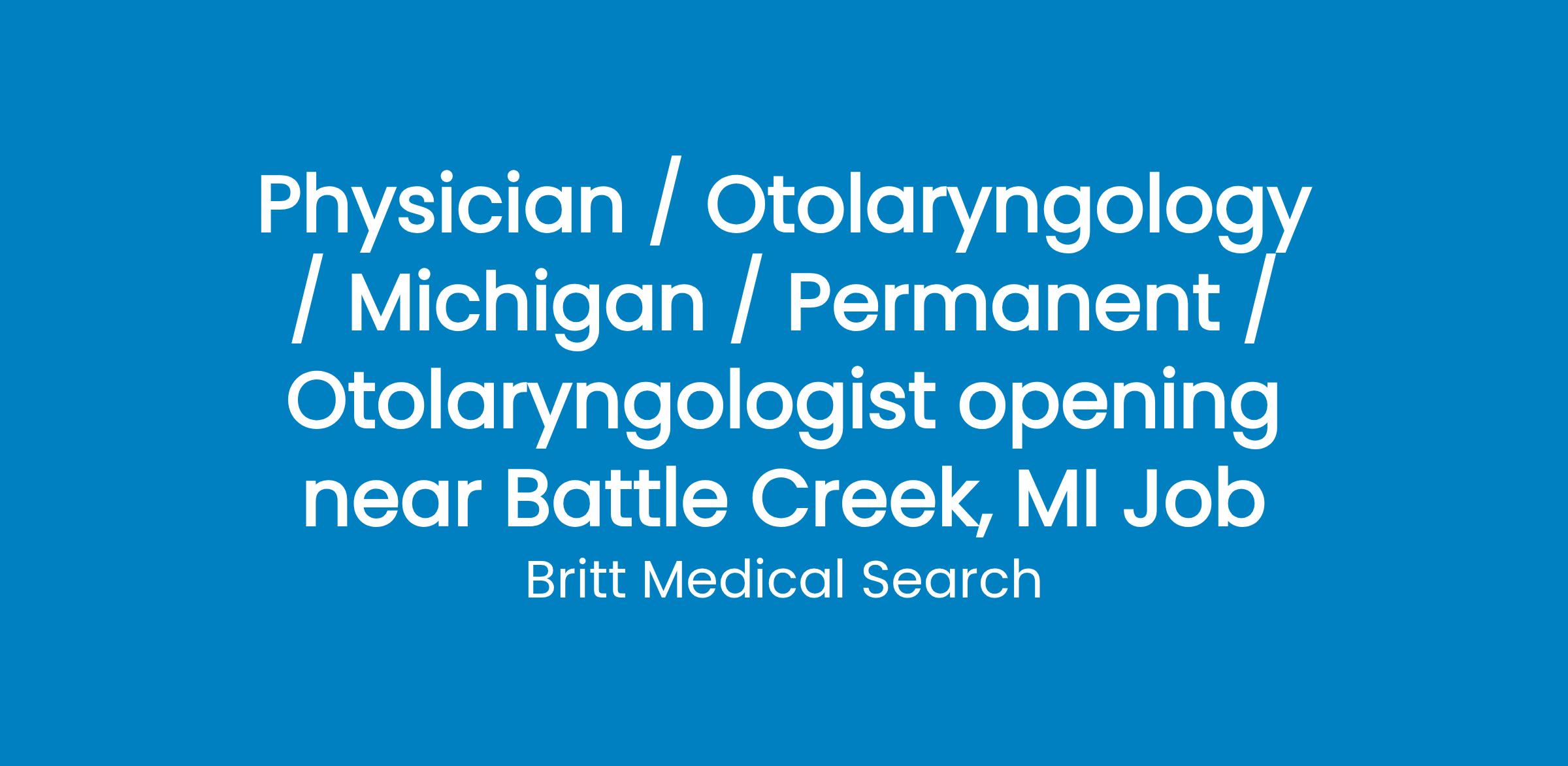 Hospital employed general Otolaryngology position joining 2 physicians, 1 PA, and 1 Audiologist in a desirable family oriented SW Michigan metro area with 65,000 population 45 minutes to Lansing and Ann Arbor associated with a modern and financially stable 100 bed hospital.