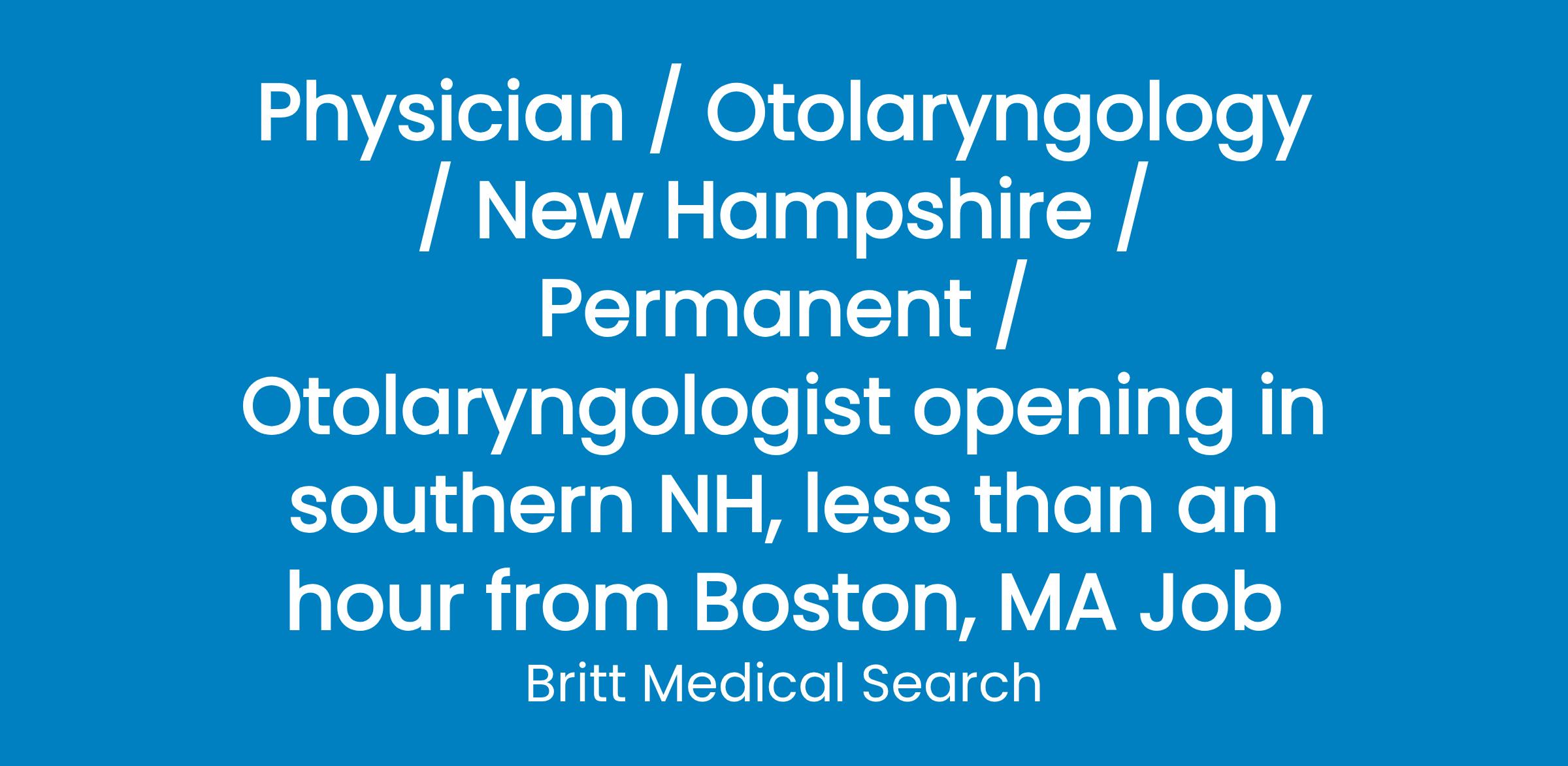 Seeking a BC/BE Otolaryngologist to join our growing multi-specialty group in New Hampshire, less than an hour from Boston, MA!