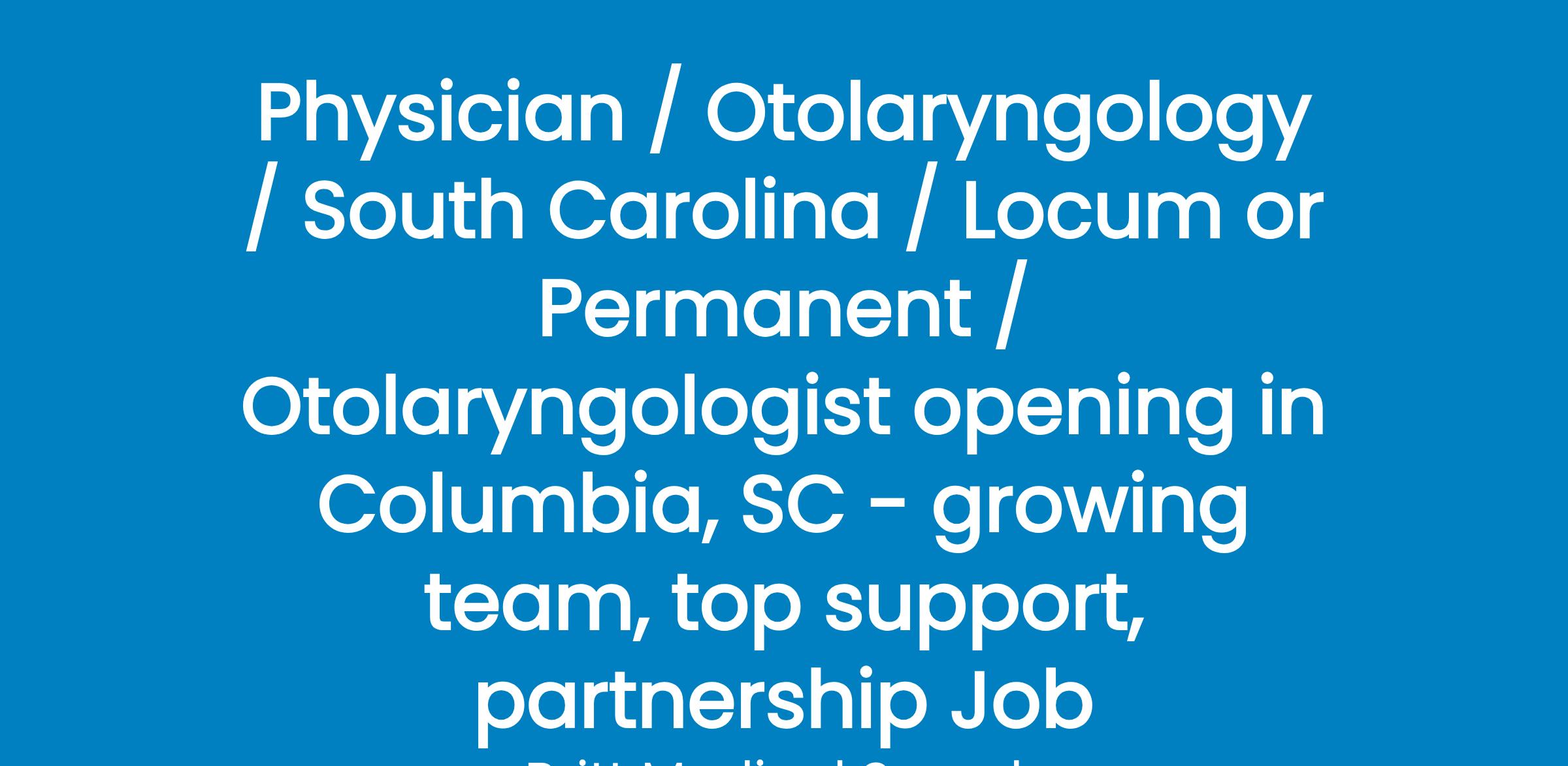 Seeking BE/BC Otolaryngologist to join talented team, and continue to expand locations in Columbia, SC.