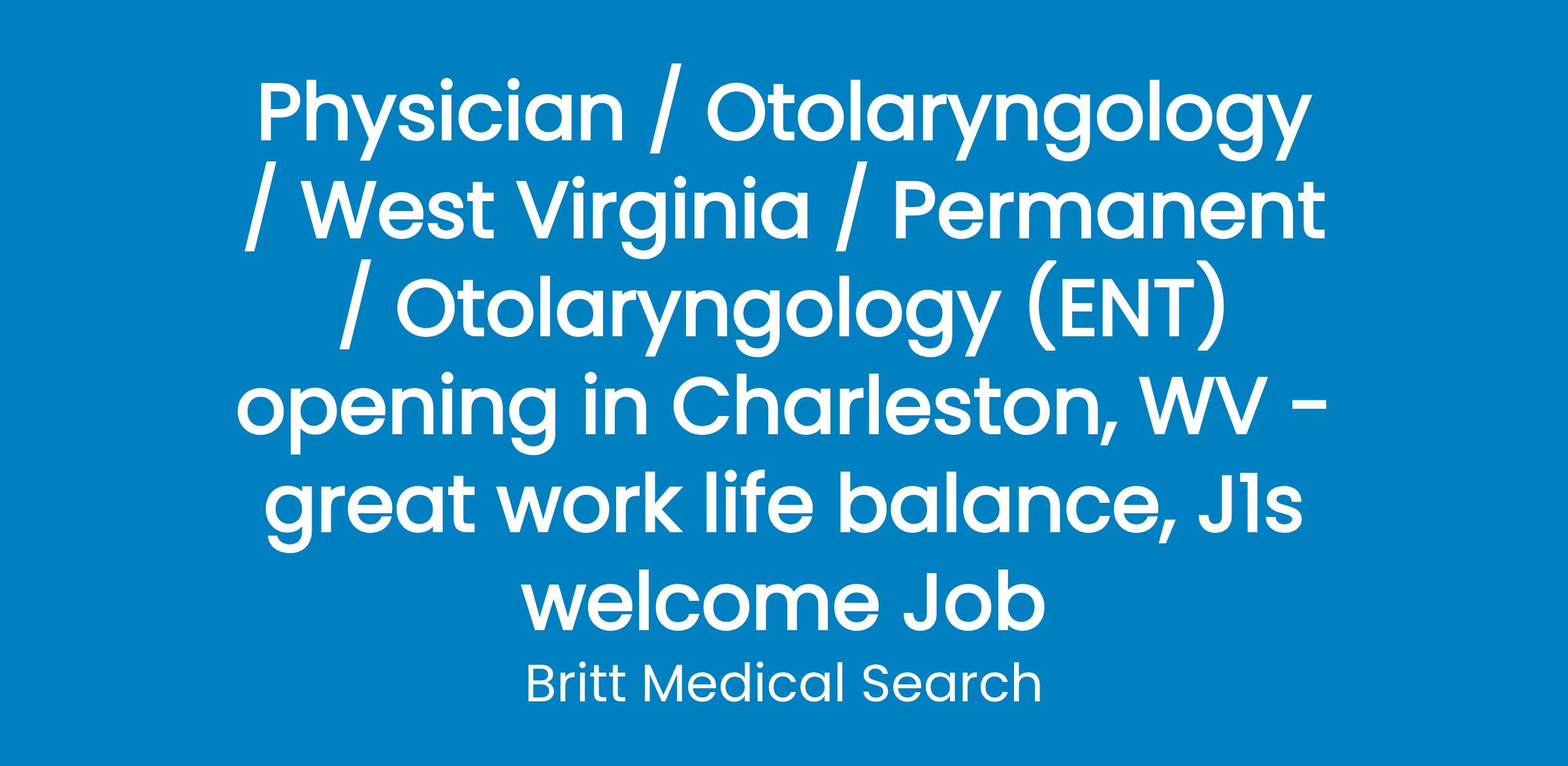Health System, located in Charleston WV, is seeking a BE/BC Otolaryngologist to join its team and be part of a health system with over 300 affiliated providers.