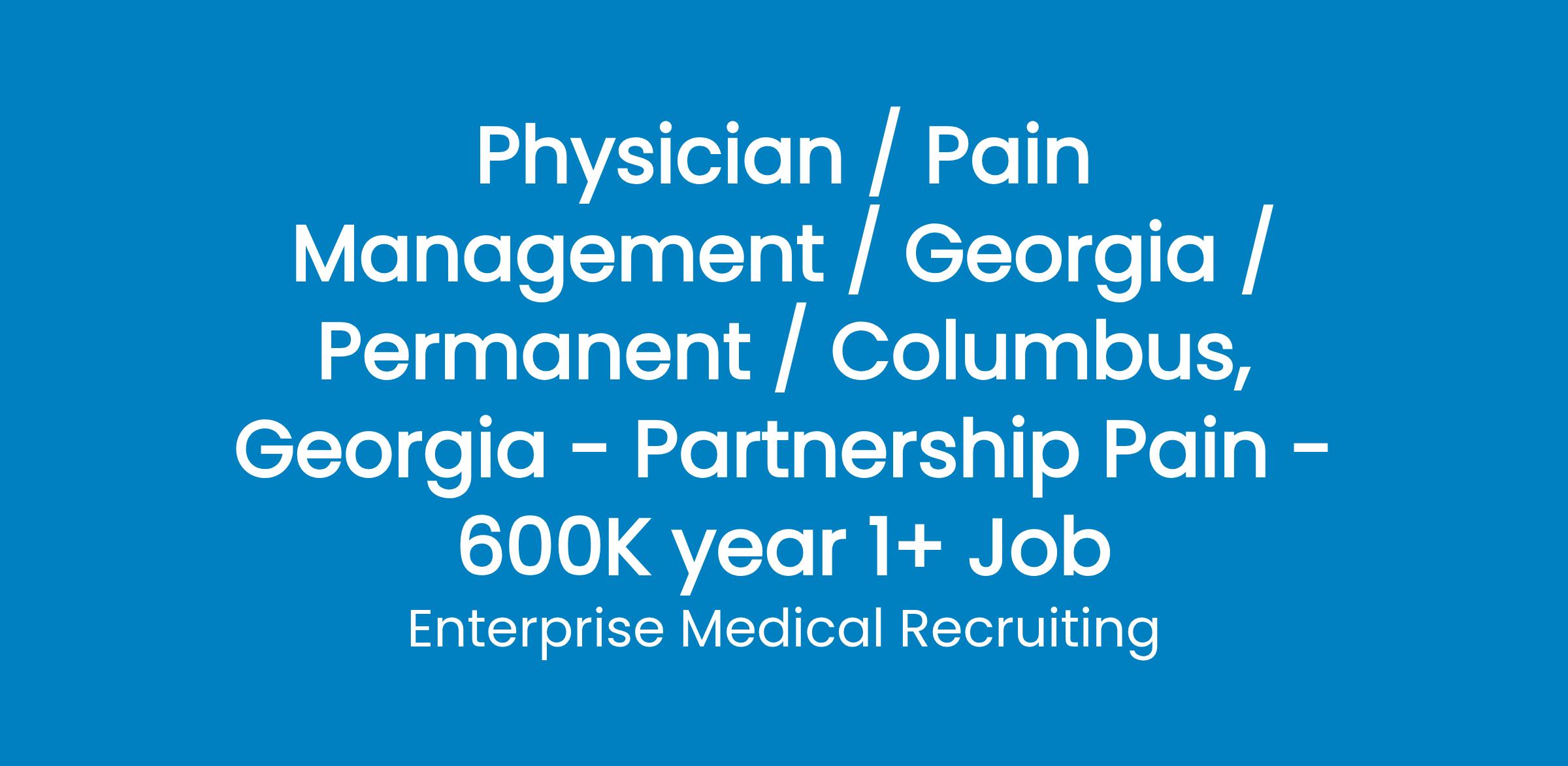 Enterprise Medical Recruiting is assisting a large Pain Management group to recruit a new Interventional Pain Specialist for Columbus, Georgia! They are seeking someone with an ACGME or NASS-accredited fellowship who is eager to step into a busy practice!