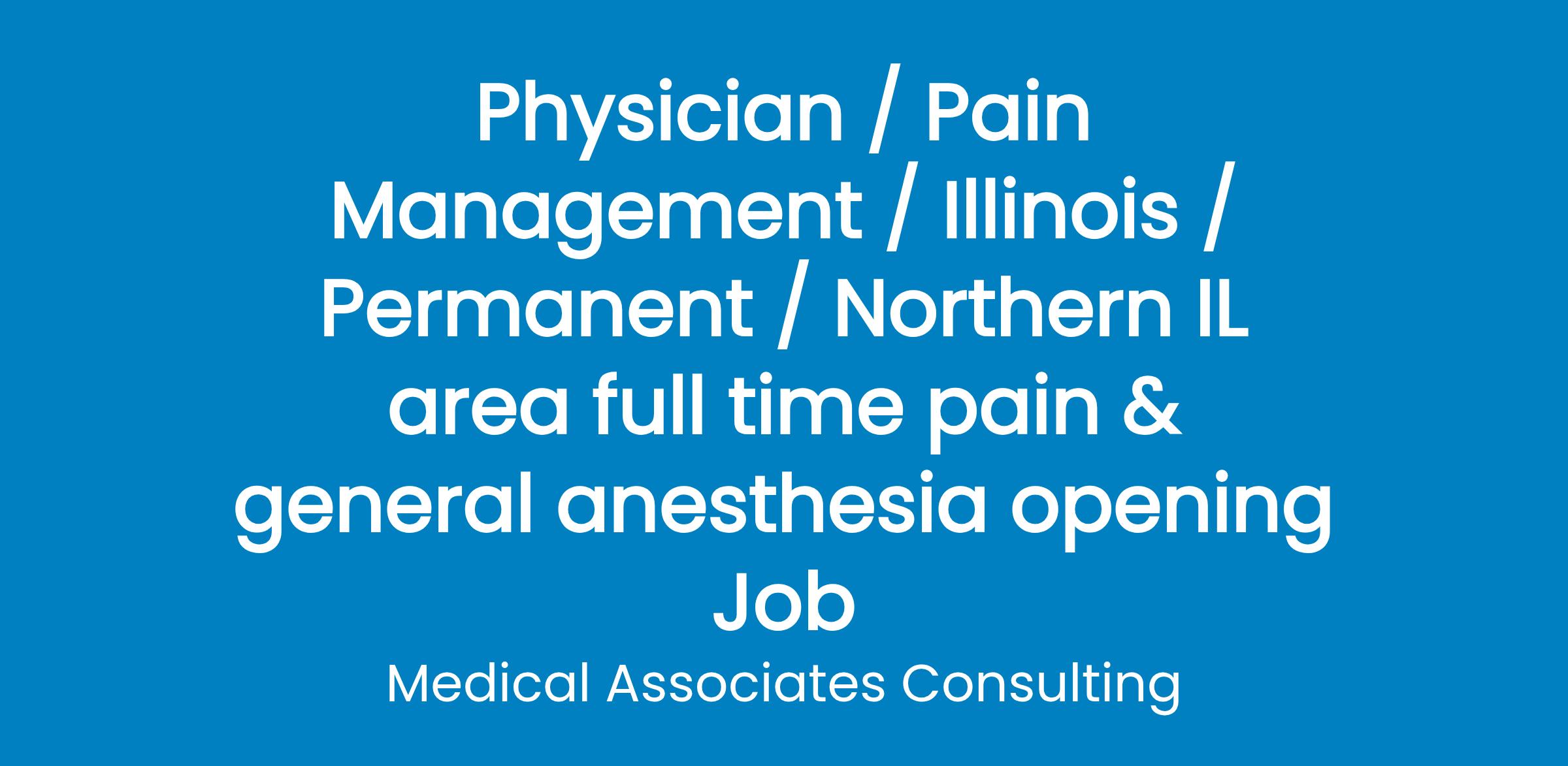 A group in Northern IL has a pain & general anesthesia opening. Pain fellowship required. Offering highly competitive salary, partnership & full benefits including generous vacation, malpractice, medical insurance & retirement plan. Great family area with numerous activities and parks located nearby! Top schools in the area!