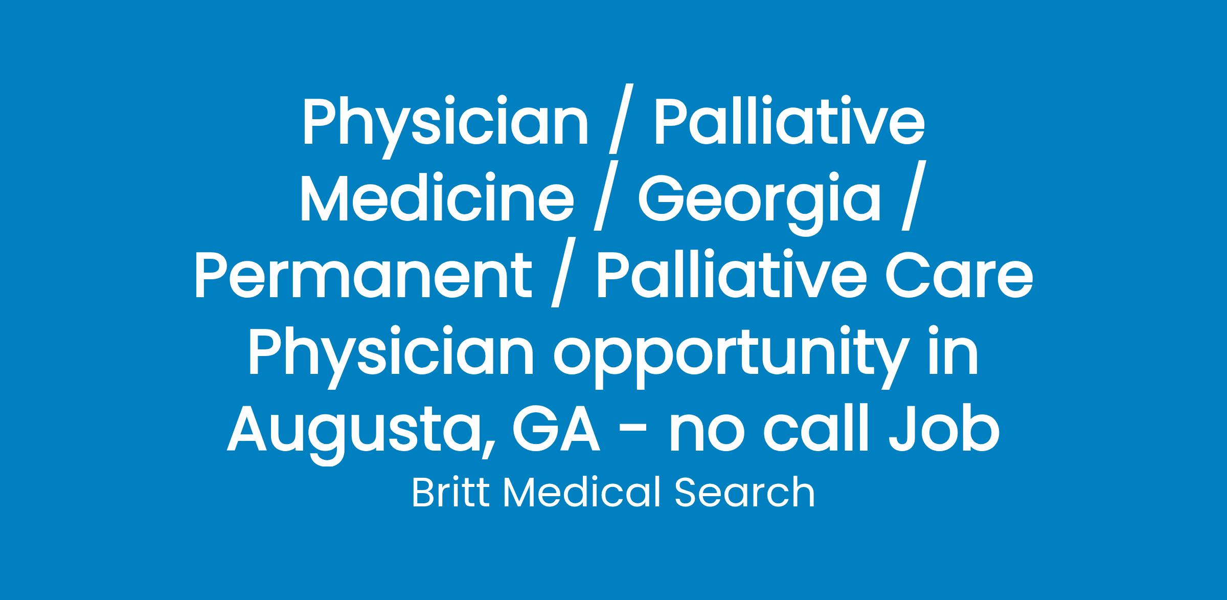 Hospital is seeking a dedicated palliative care physician to join their team in Augusta, GA.
