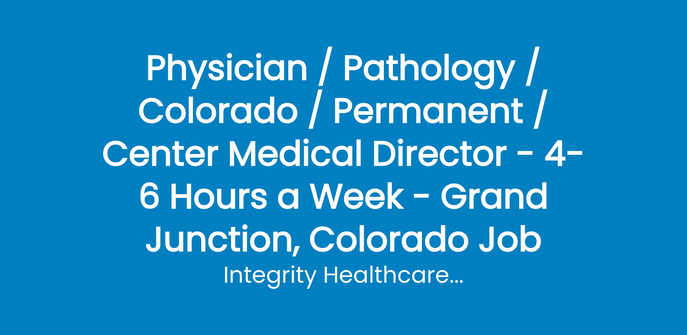 Physician / Pathology / Colorado / Permanent / Center Medical Director - 4-6 Hours a Week - Grand Junction, Colorado Job