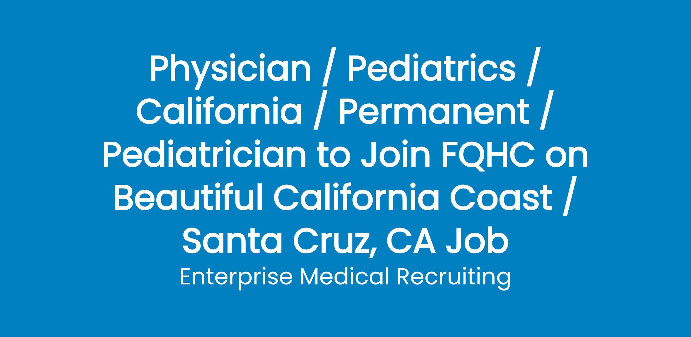 A Federally Qualified Health Center (FQHC) in Santa Cruz, California is adding a full-time BC/BE Pediatrician to their team. This organization prides itself on serving all patients, regardless of their ability to pay.