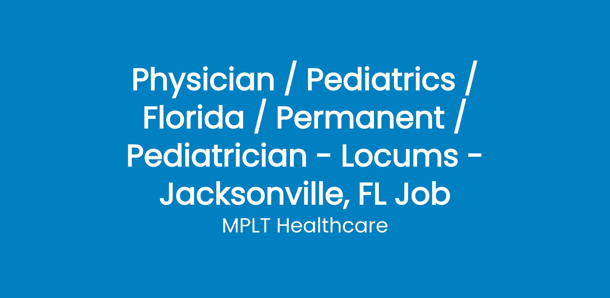 MPLT Healthcare is looking for physicians who Understand the Urgency, Never Give Up, and Have the Courage to Excel in the forever changing medical industry! We have numerous opportunities for an experienced Pediatrician with highly competitive pay rates in Jacksonville, FL.