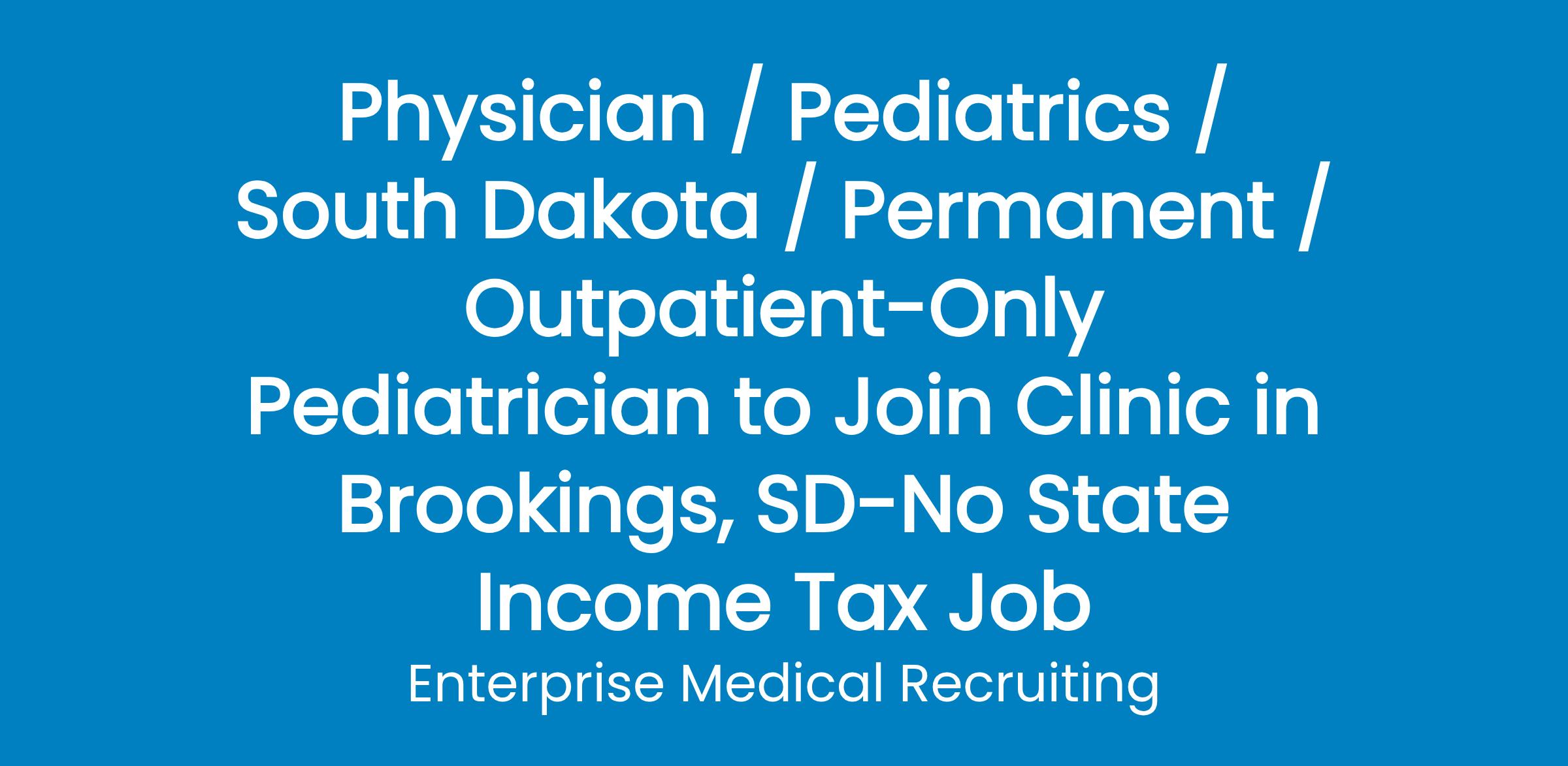 The largest rural health system in the United States is adding a full-time BC/BE Pediatrician to their clinic in Brookings, South Dakota !