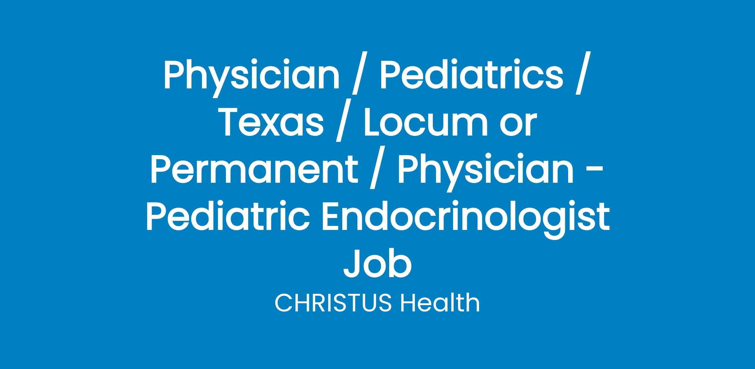 Join Our Team as a Pediatric Endocrinologist at CHRISTUS Trinity Clinic Tyler, TX