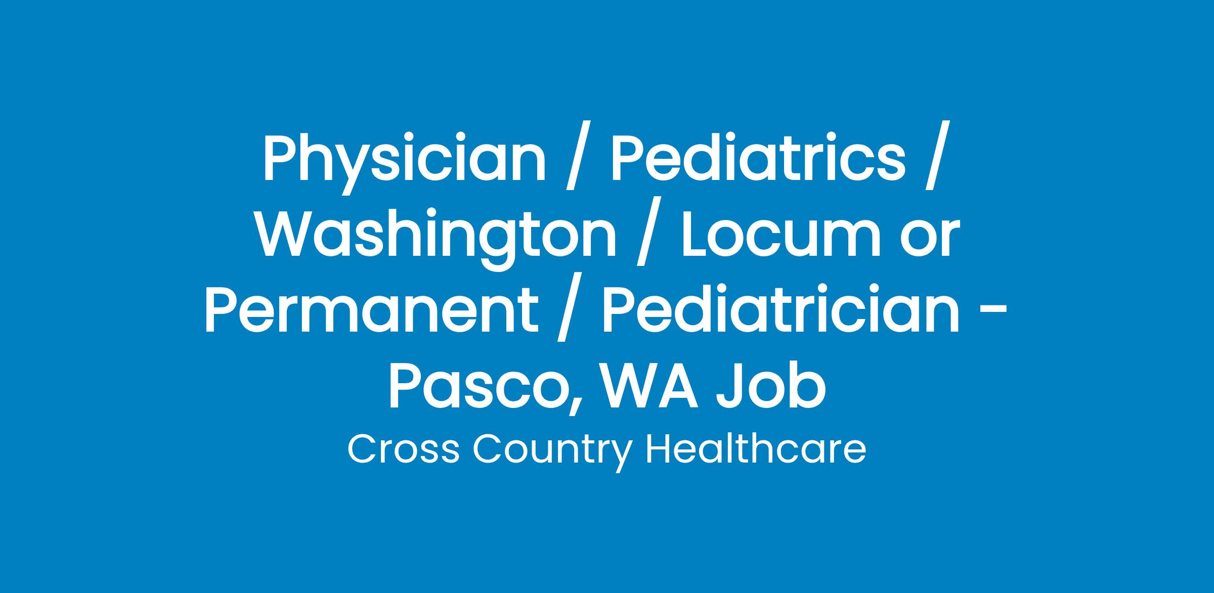Join our dedicated, mission-driven team as a Full-time Pediatrician in Pasco, WA. We are seeking an experienced physician (no new graduates) to deliver patient-centered, high-quality pediatric care in both outpatient clinic and affiliated hospital settings. This role emphasizes preventive care, health education, and comprehensive management of acute and chronic conditions for infants, children, adolescents, and young adults.